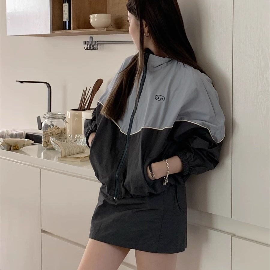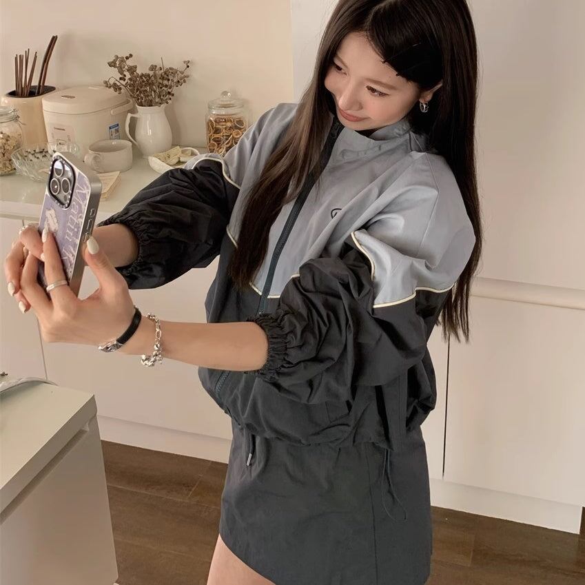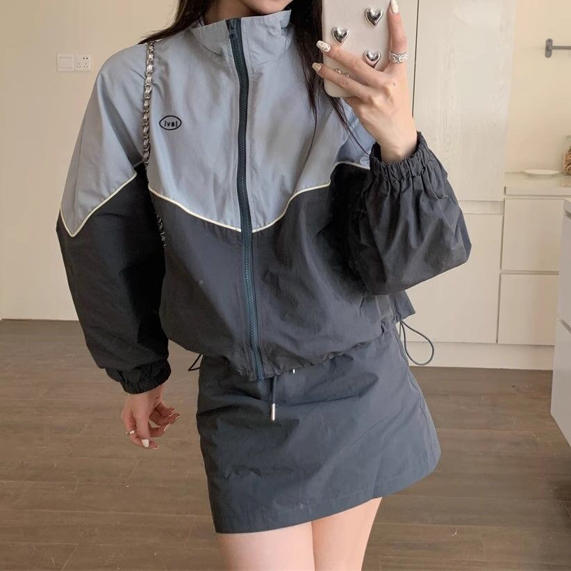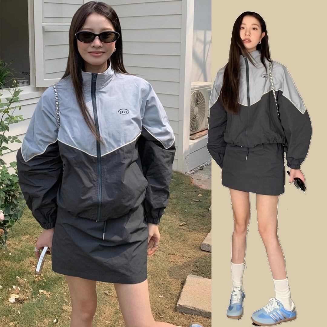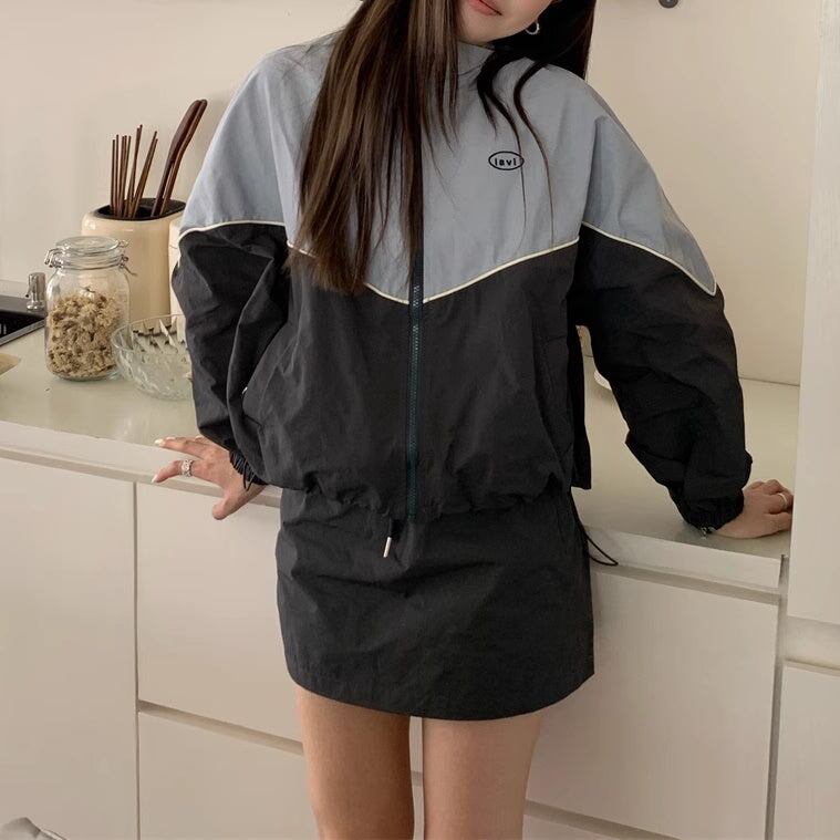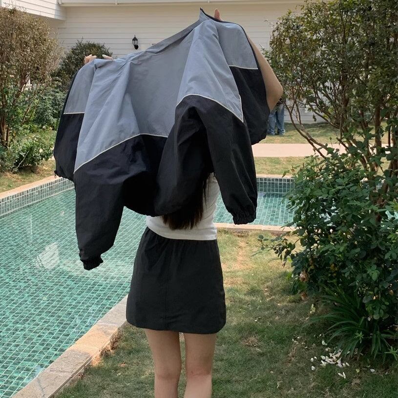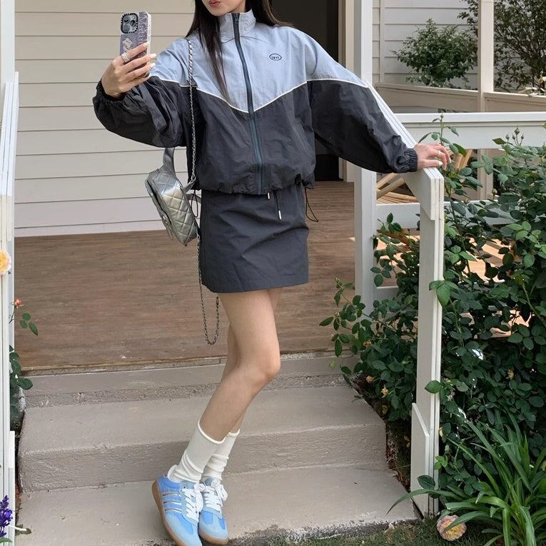 セットアップ レディース ナイロン ジャージ 上下セット 韓国 ファッション カラーブロック ブルゾン ミニスカート スポーツ カジュアル ストリート