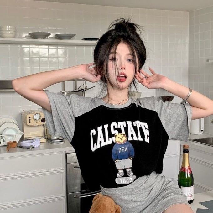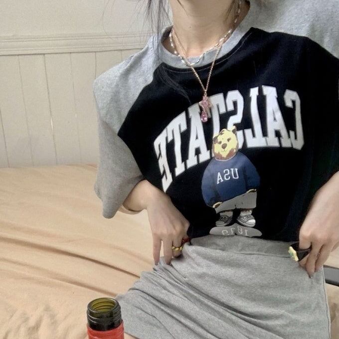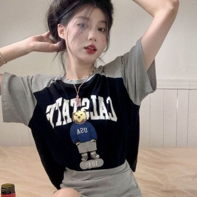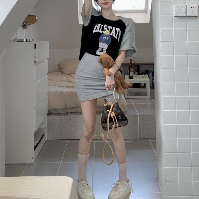 セットアップ レディース 韓国Tシャツ スカート 上下セット レディース 半袖 ロゴ アニマル ラグランTシャツ タイトスカート 上下 2点セット