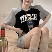 セットアップ Tシャツ スカート レディース 韓国 ファッション 半袖 ロゴ アニマル ラグラン クロップTシャツ タイトスカート 上下 2点セット