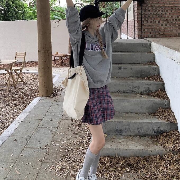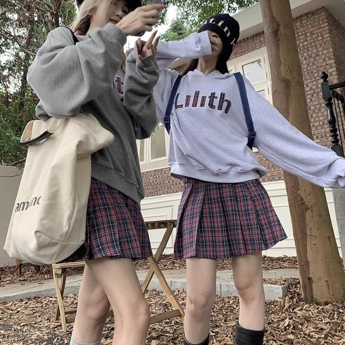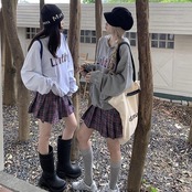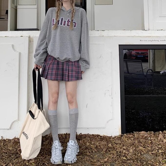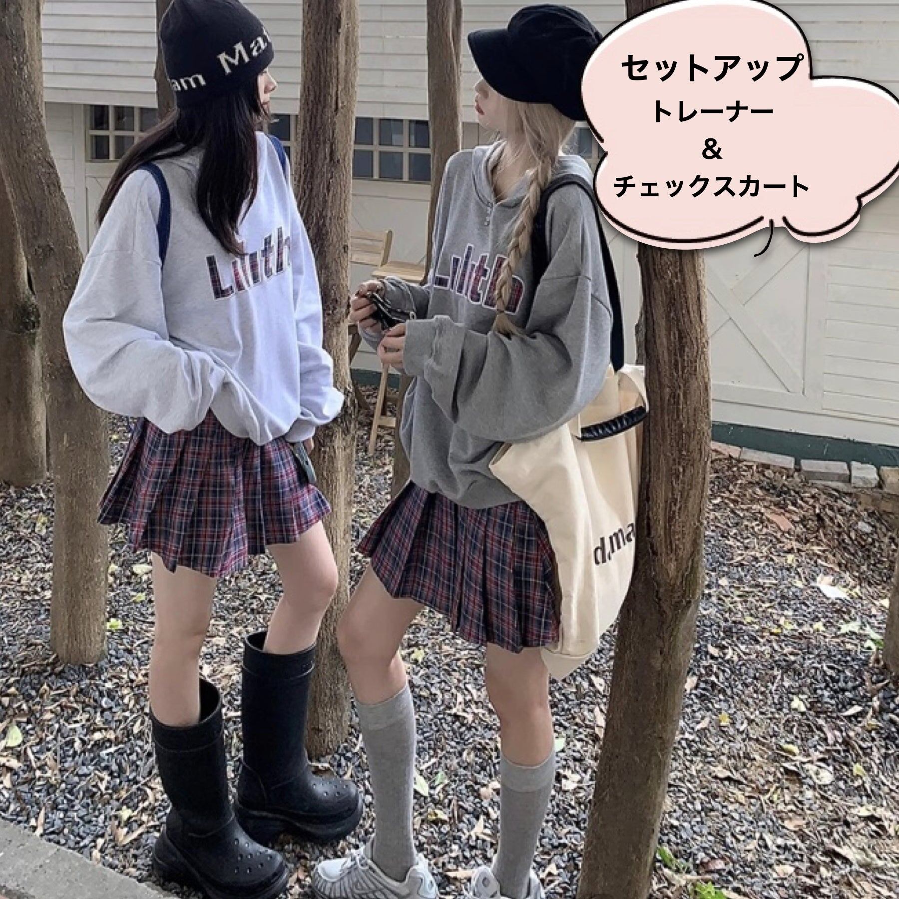 プリーツスカート セットアップ レディース 韓国 ファッション チェック柄 スウェットパーカー プルオーバ— プレッピーコーデ 学生コーデ 長そで ミニスカート