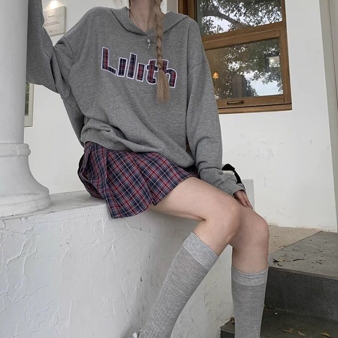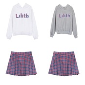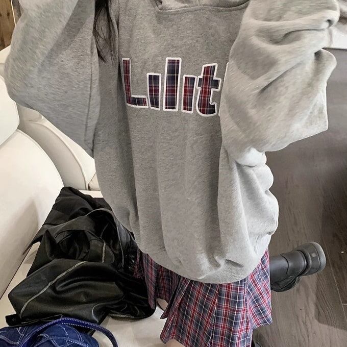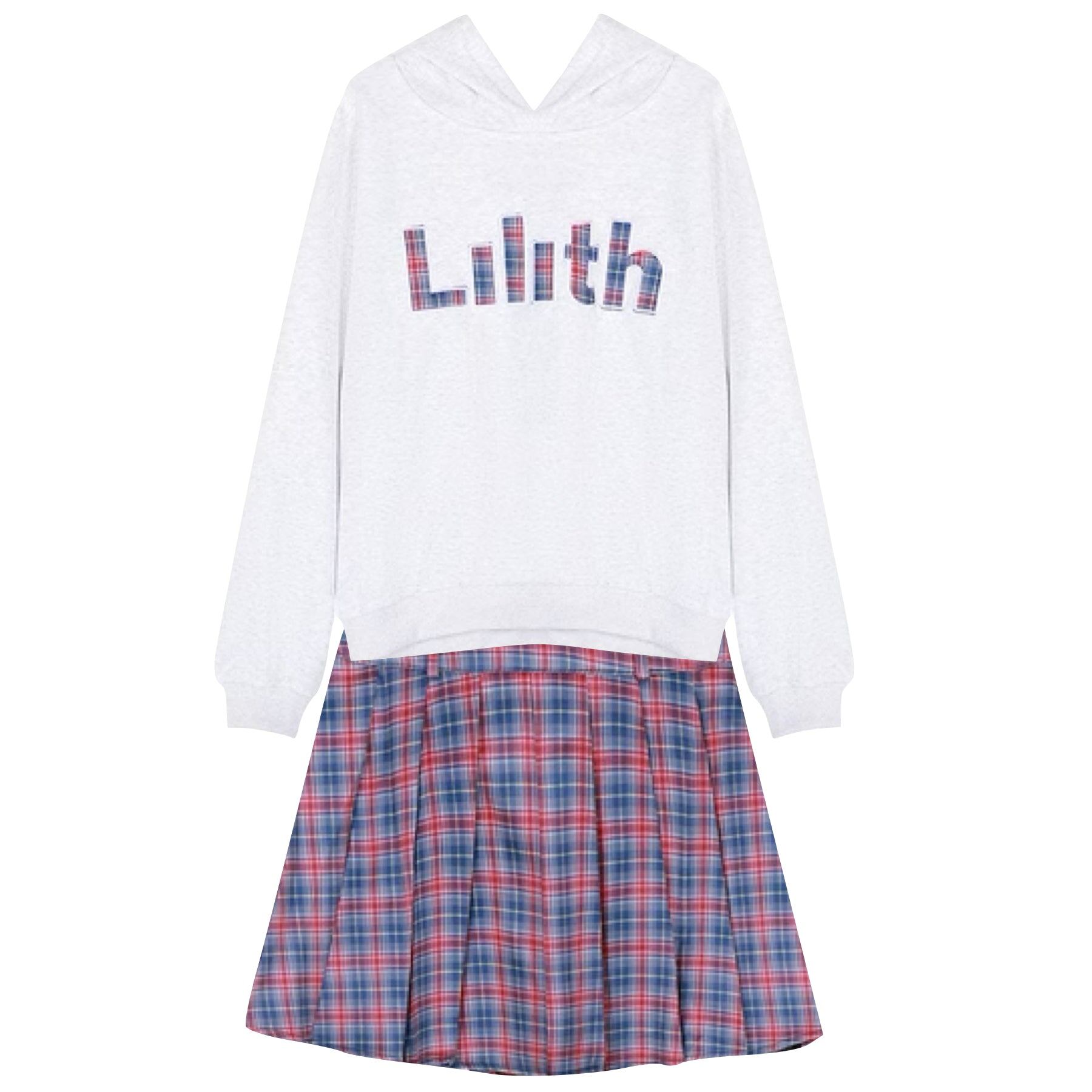 セットアップ チェック スカート パーカー 上下セット 韓国 ファッション チェック柄 ミニスカート チェックロゴ スウェットパーカー プルオーバ—