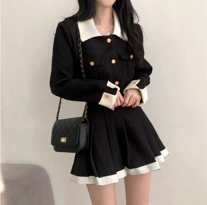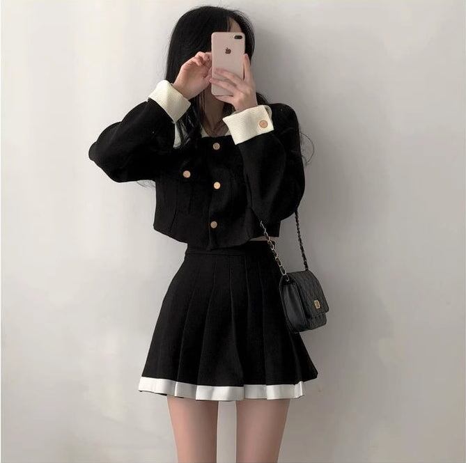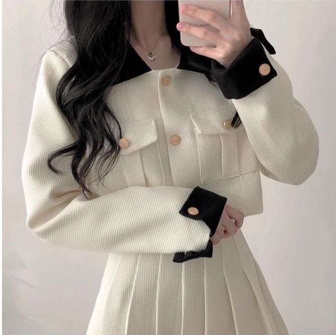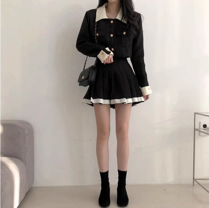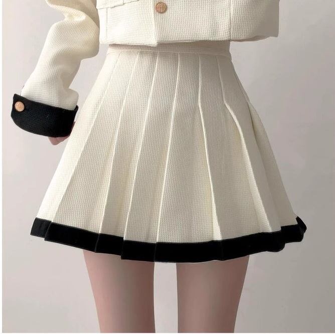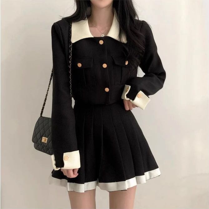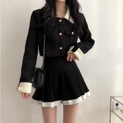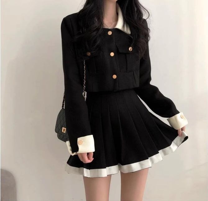 セットアップ レディース 韓国 ファッション ショートジャケット カフスボタン プリーツスカート ショートトップス おしゃれ ジャケット スカート