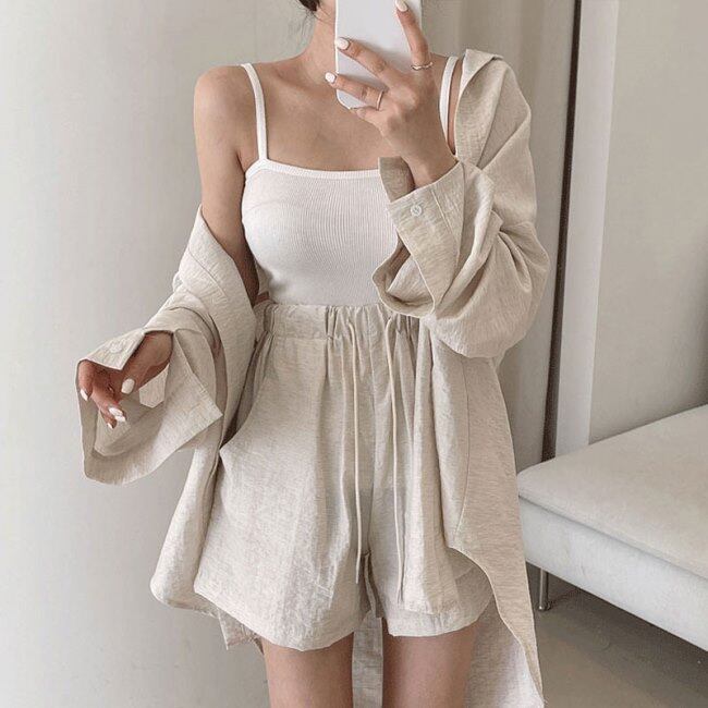 セットアップ 長袖シャツ ハーフパンツ レディース 韓国 ファッション 2点セット オーバーシャツ ショートパンツ? ロングシャツ