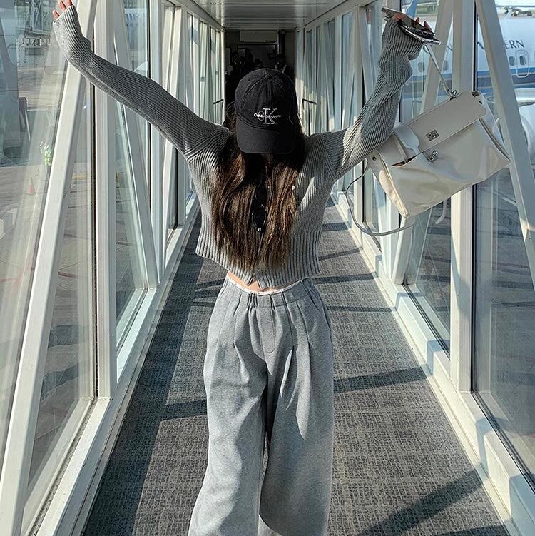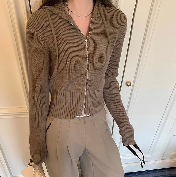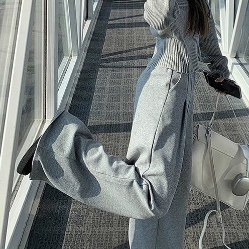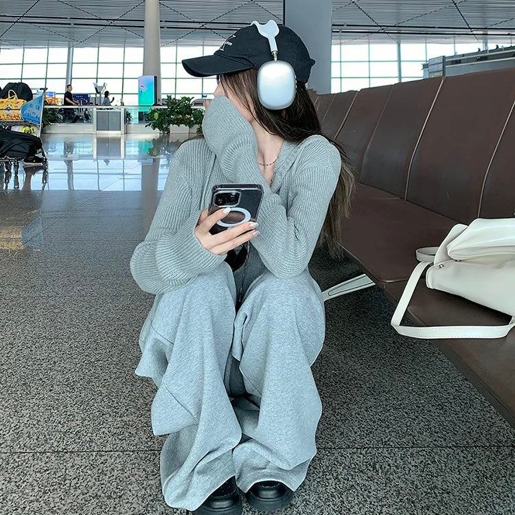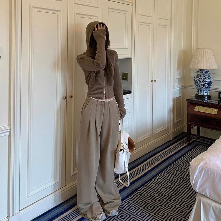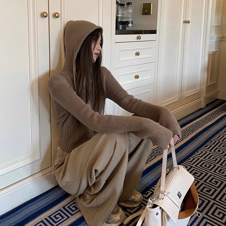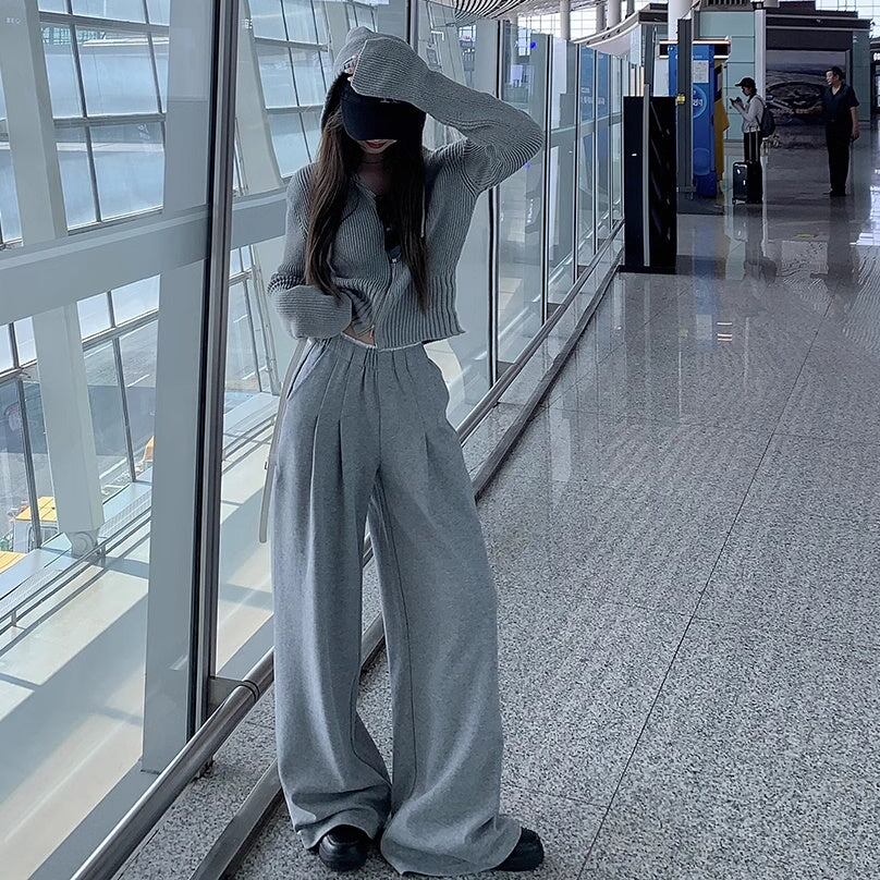 セットアップ レディース ジップ ニットパーカ ワイドパンツ 上下セット 韓国 ファッション コーデセット