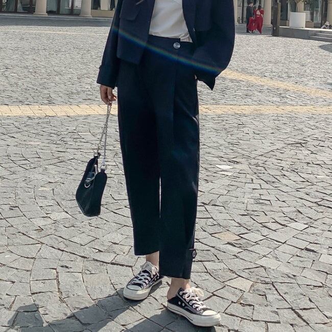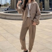 セットアップ スーツ パンツ レディース 韓国 ファッション クロップドジャケット テーパードパンツ 春スーツ ベージュ ネイビー