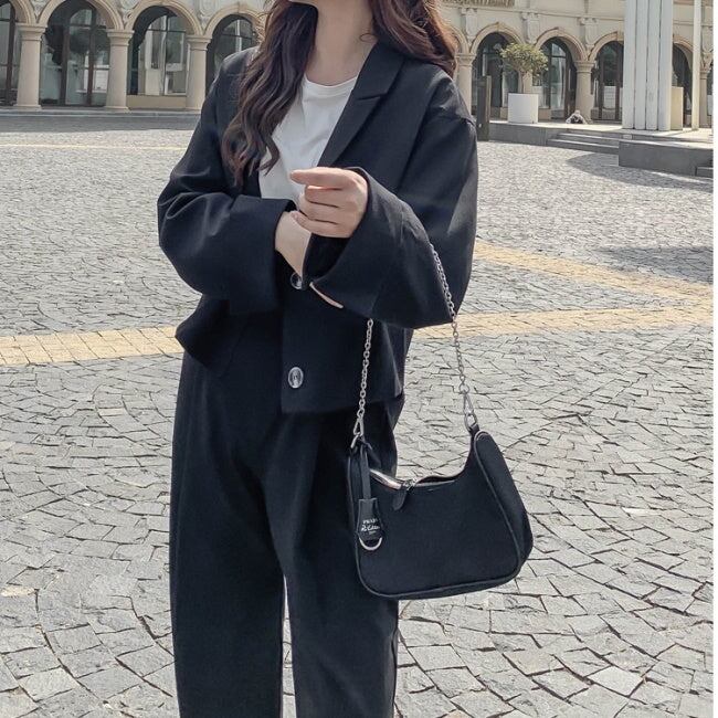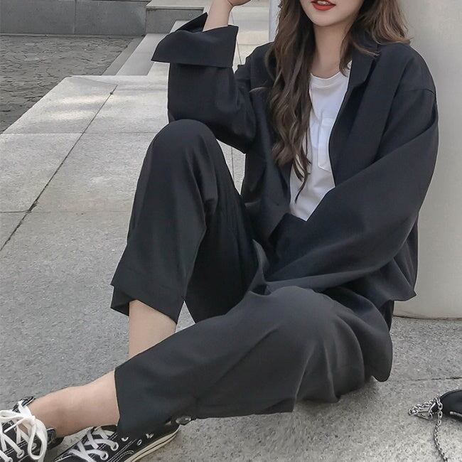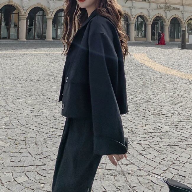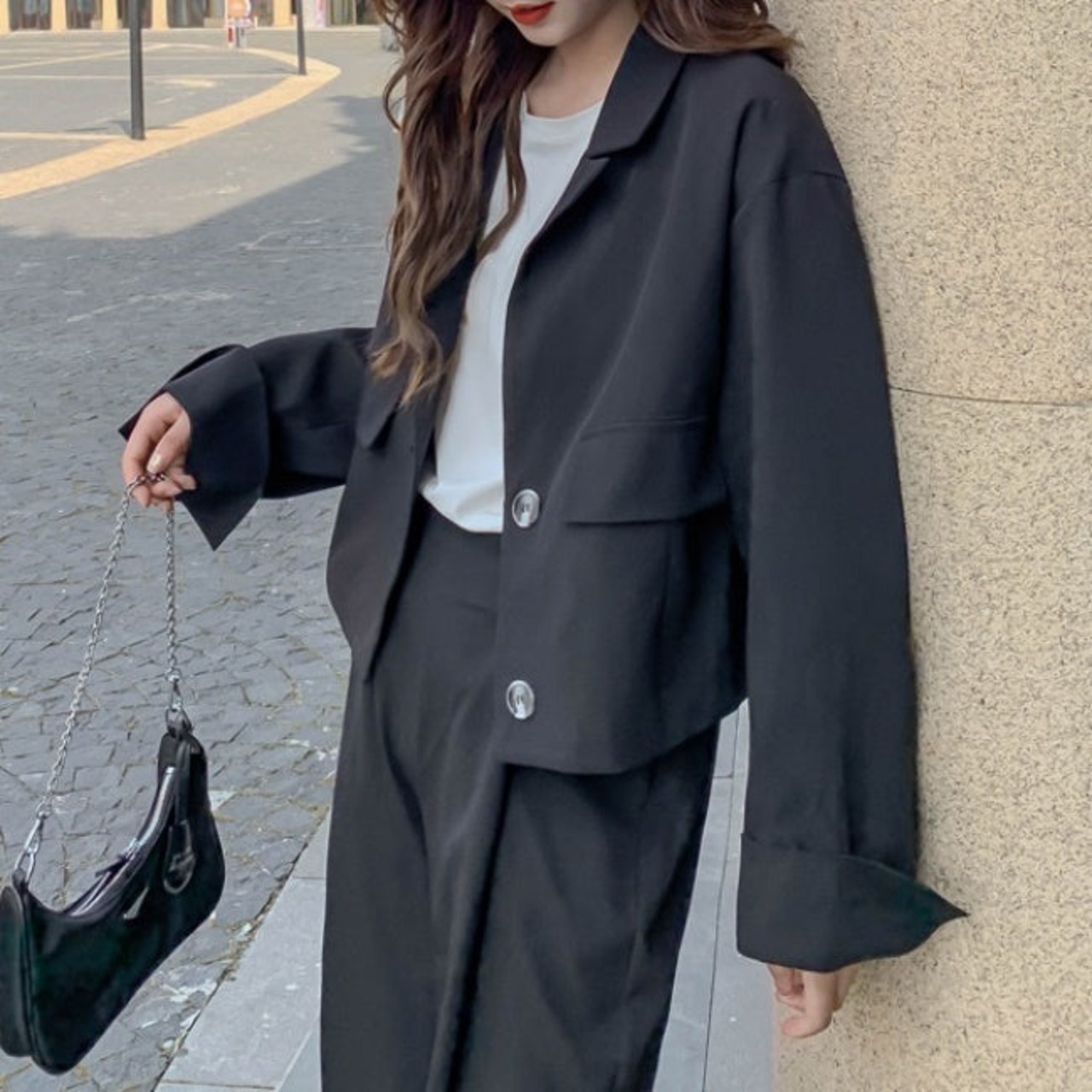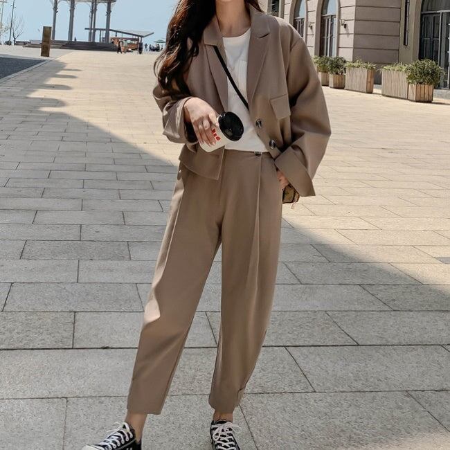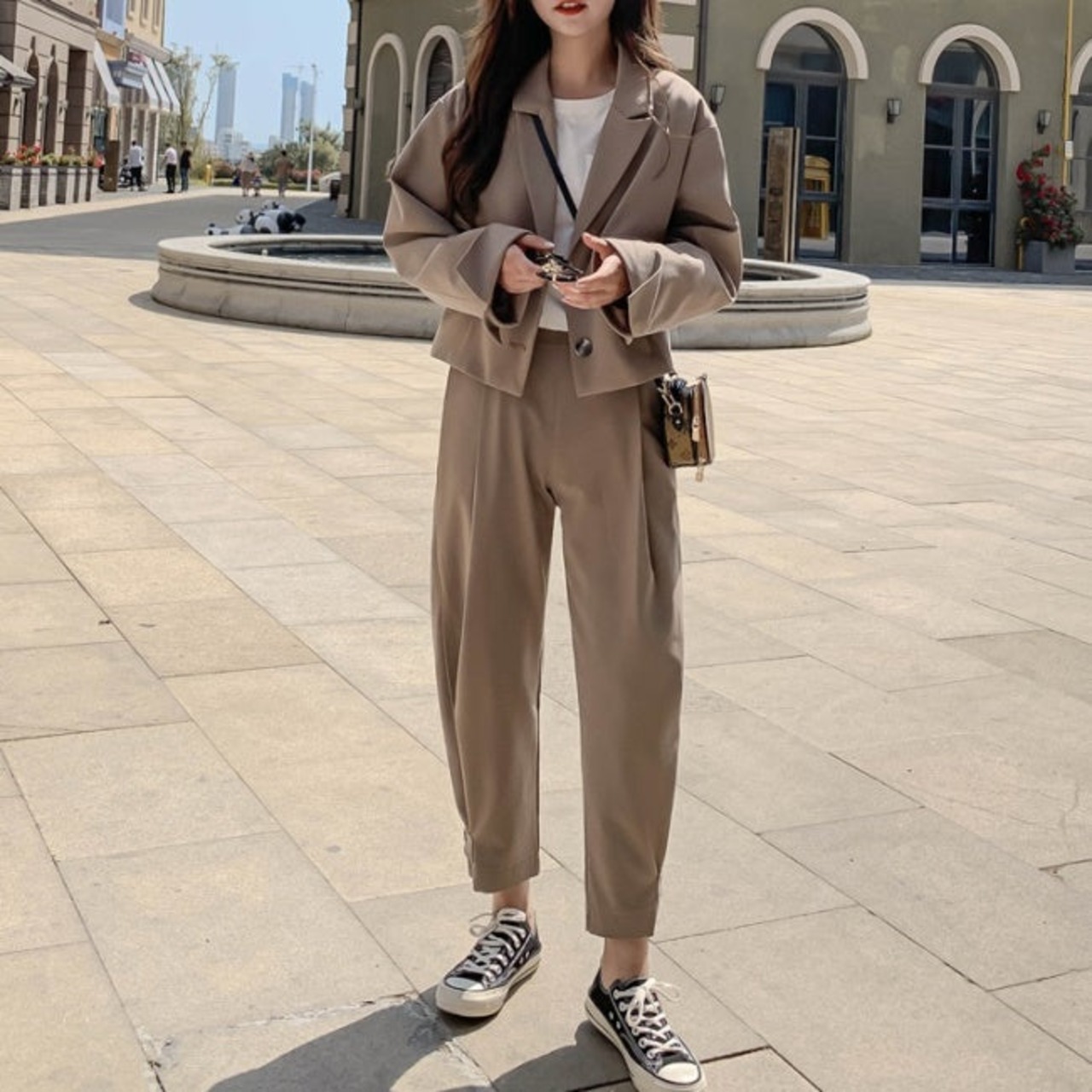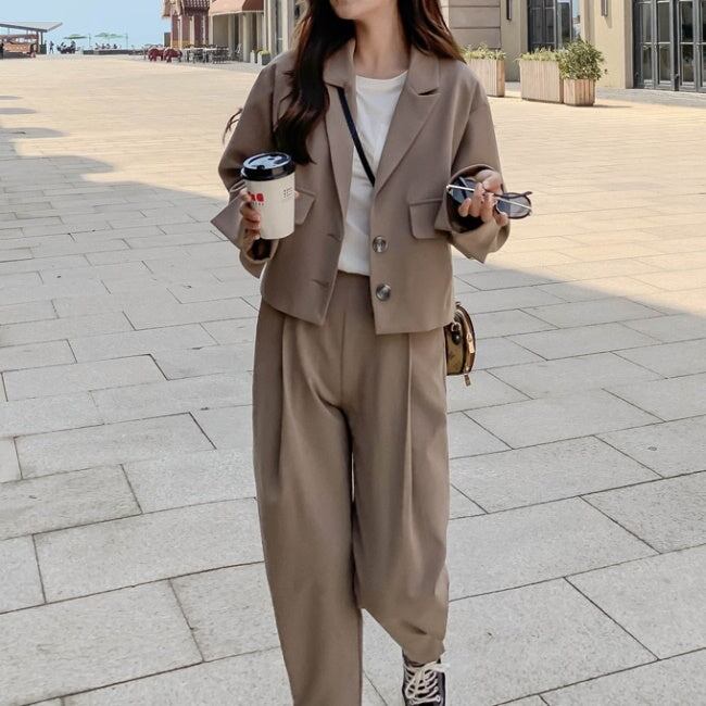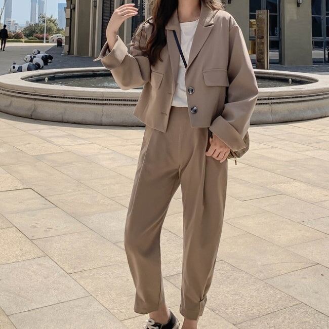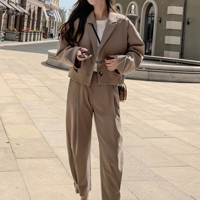 セットアップ レディース スーツ クロップド ジャケット テーパード ワイドパンツ 上下セット 韓国 ファッション 春