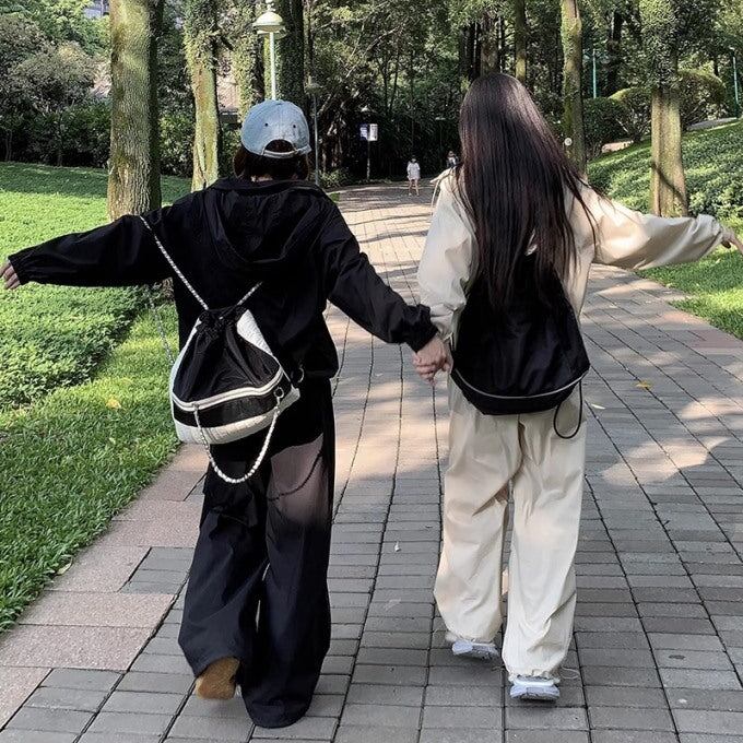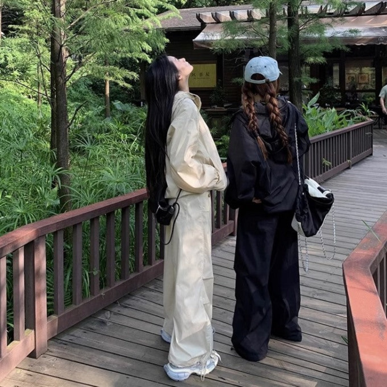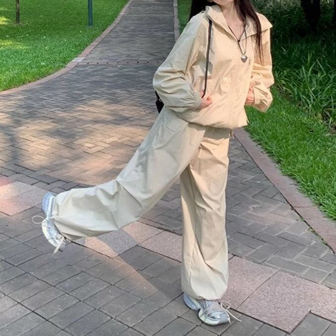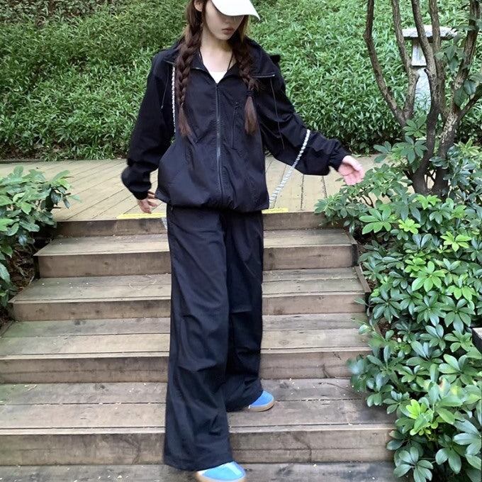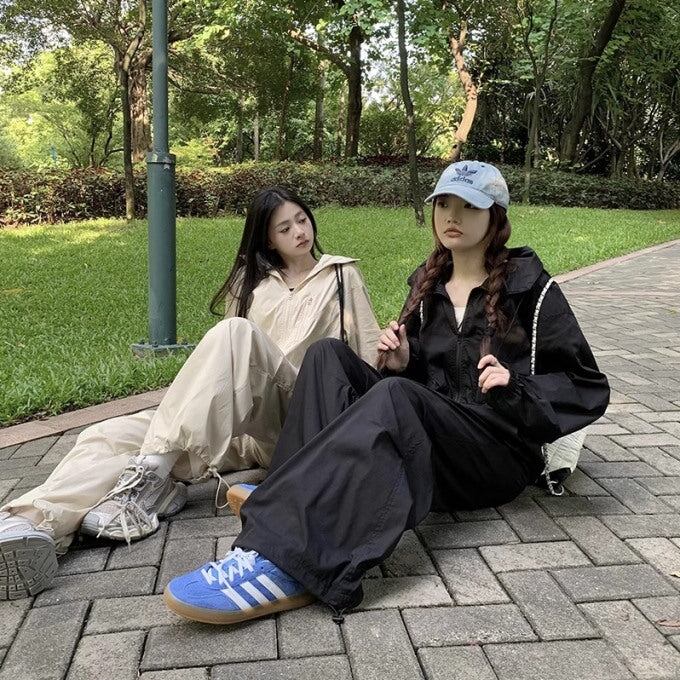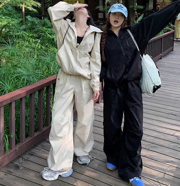 セットアップ レディース 韓国 ファッション ウィンドブレーカー シャカパン 上下2点セット ジップパーカー ジョガーパンツ ナイロン