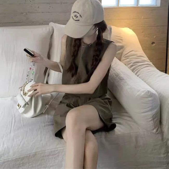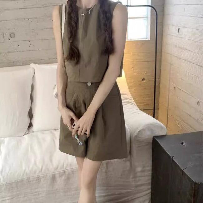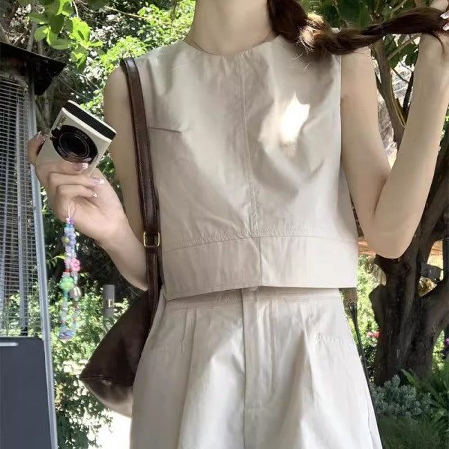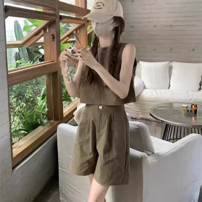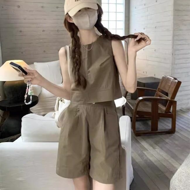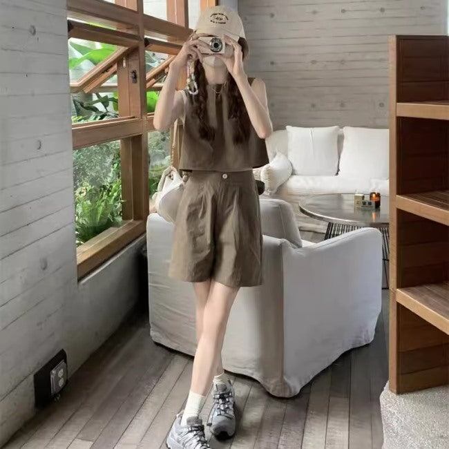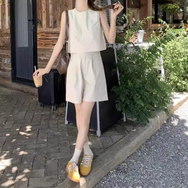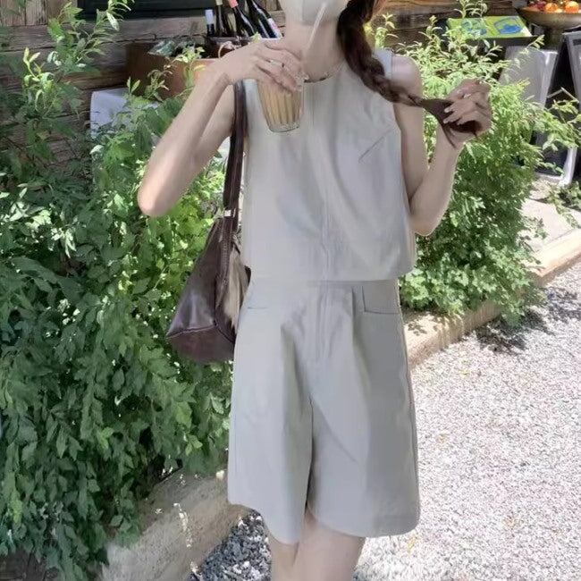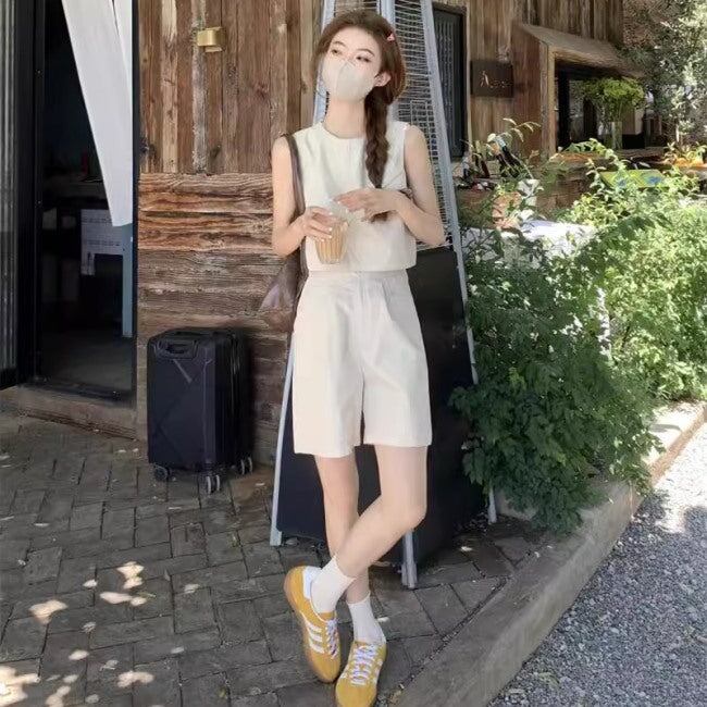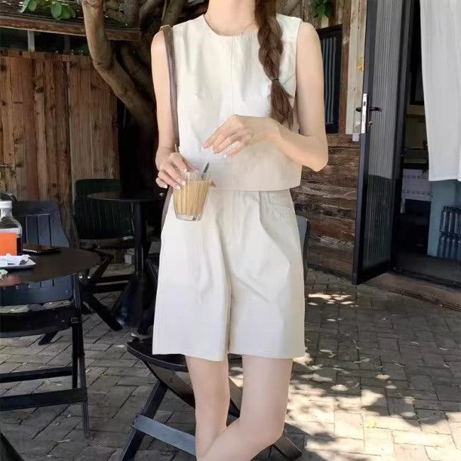 セットアップ 夏 ノースリーブ レディース 韓国 ファッション ハーフパンツ シンプル カジュアル 上下2点セット