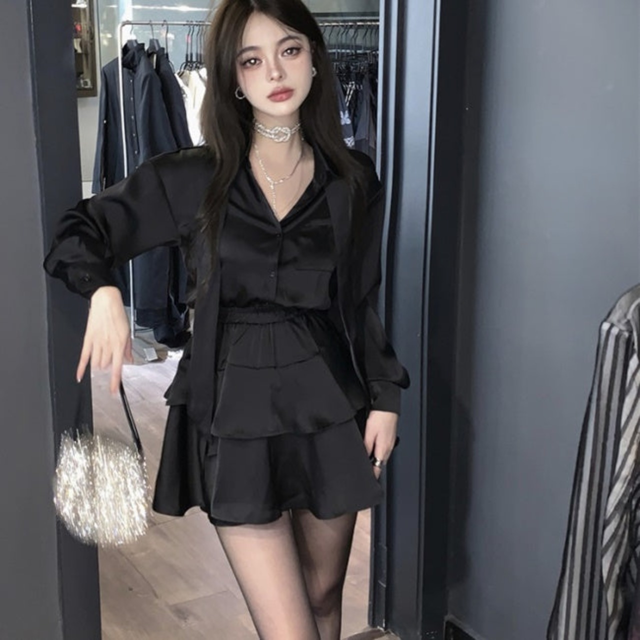 シックでガーリーな セットアップ♪長袖シャツとスカート