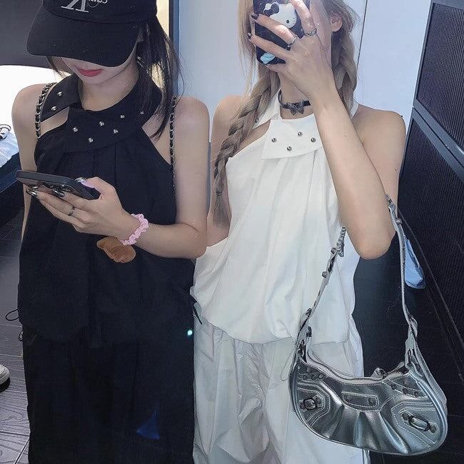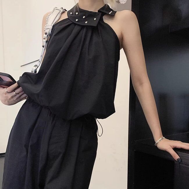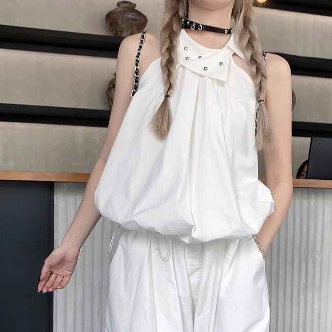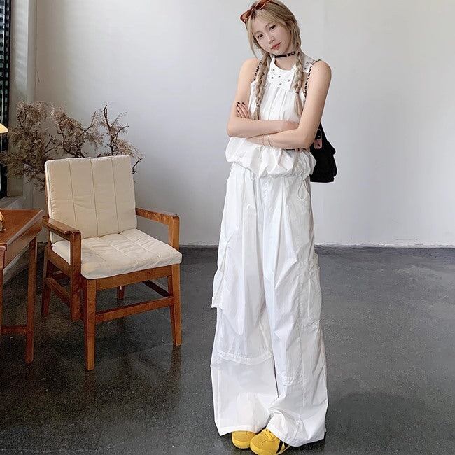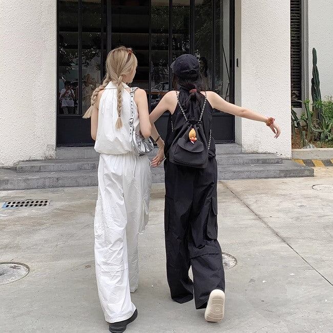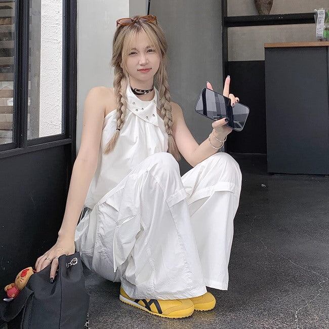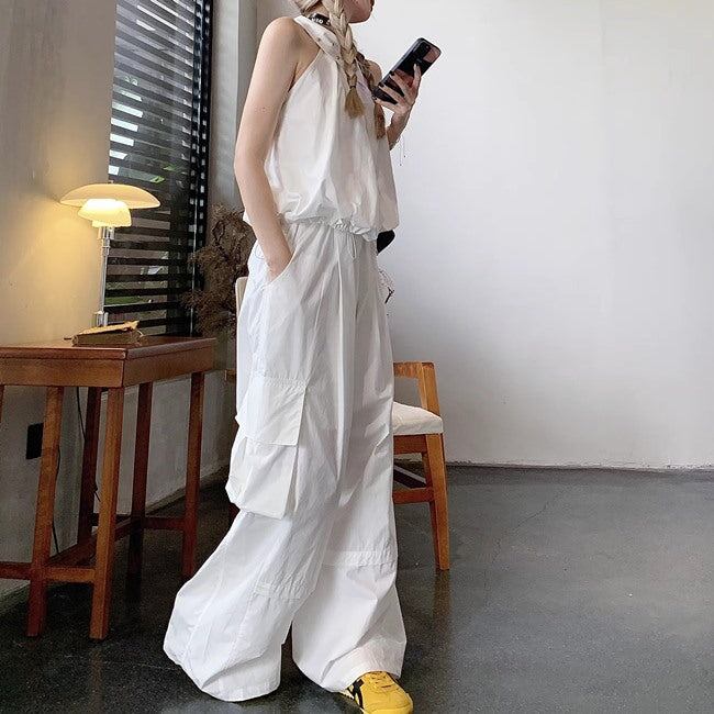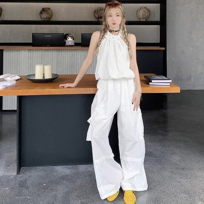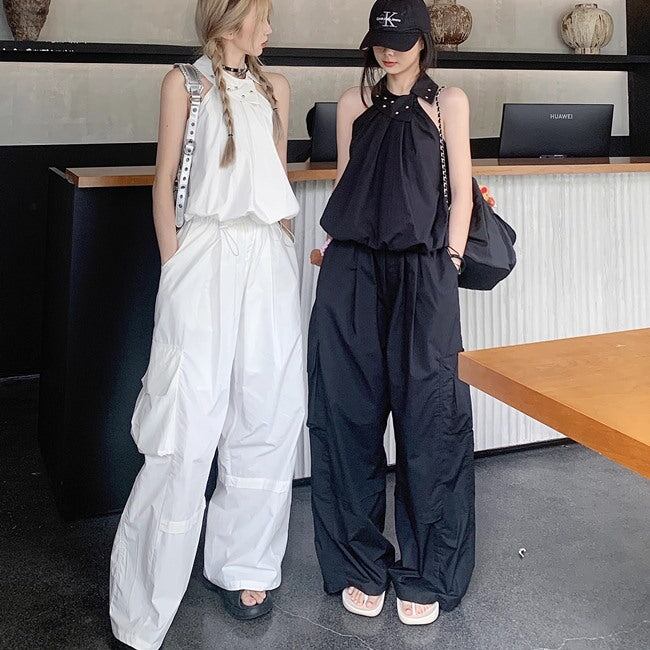 セットアップ レディース ホルターネック ノースリーブ カーゴパンツ 上下セット 韓国 スポーツミックス