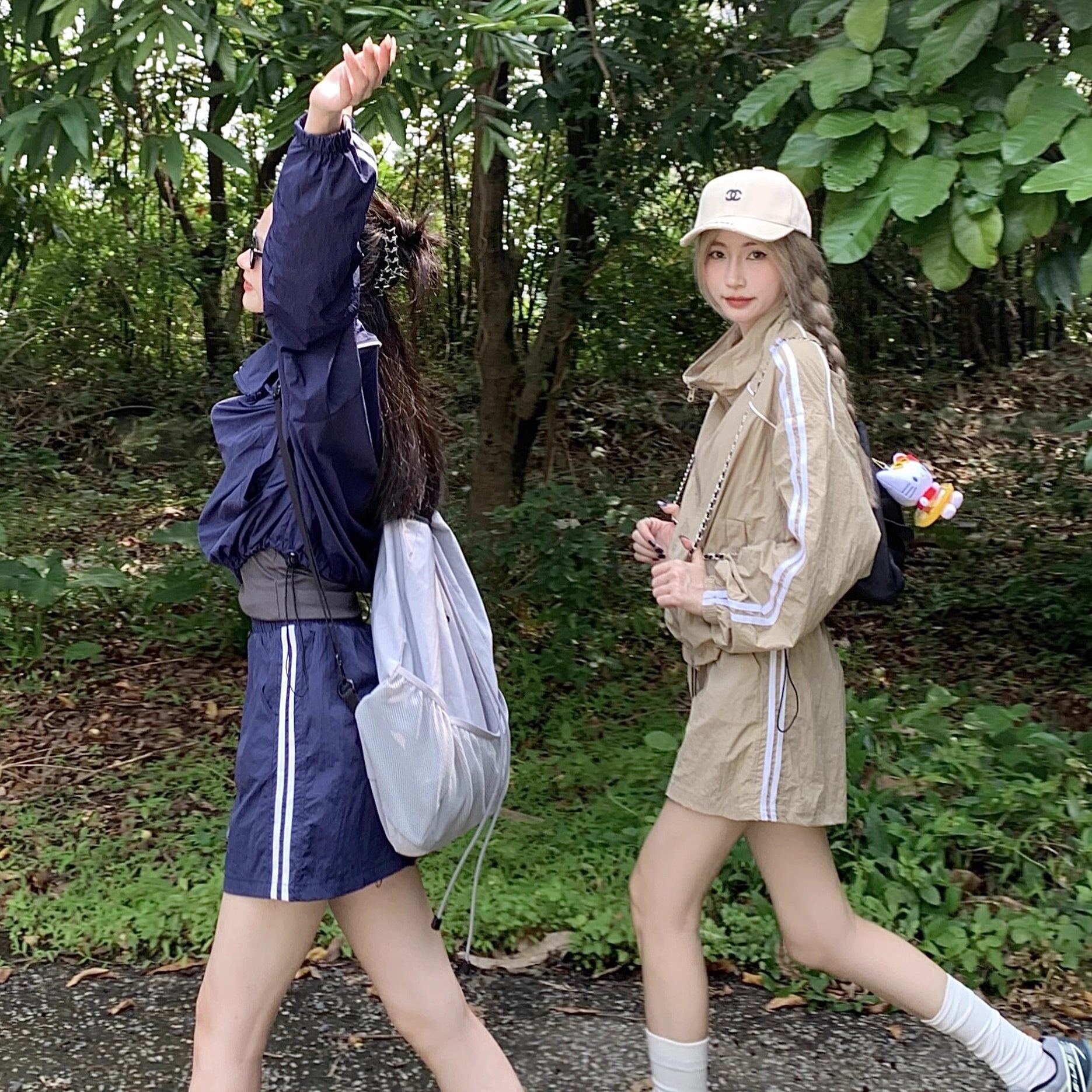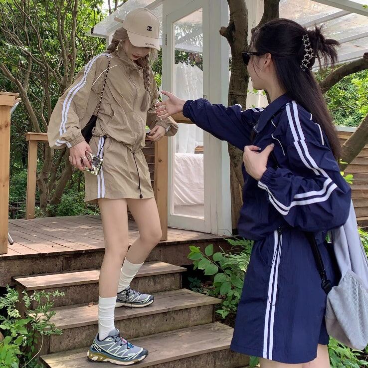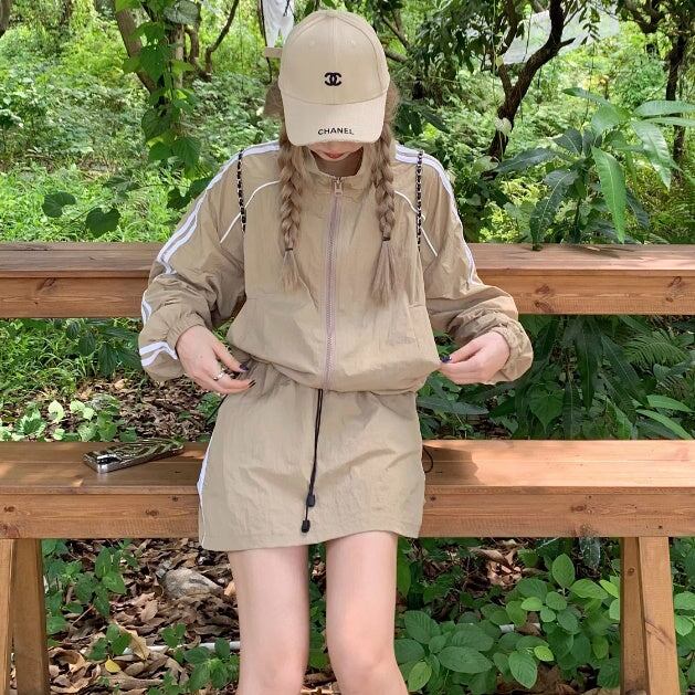 セットアップ ウィンドブレーカー ミニスカート レディース 韓国 ファッション サイドライン ジップジャケット ブルゾン