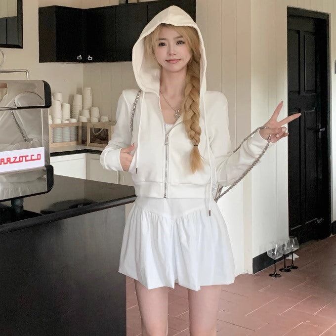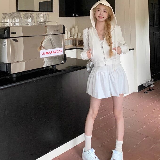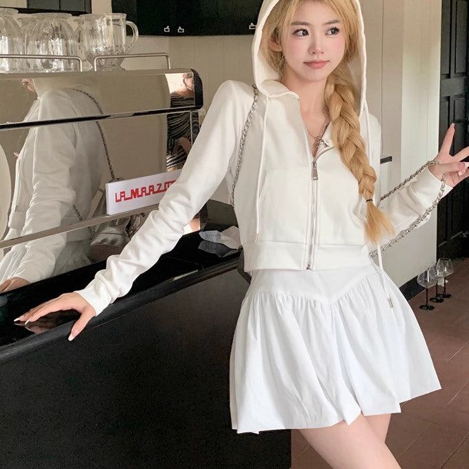 セットアップ レディース 韓国 ファッション パーカー ギャザー切り替えスカート フレアミニスカート 長袖パーカー