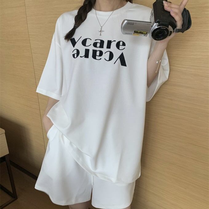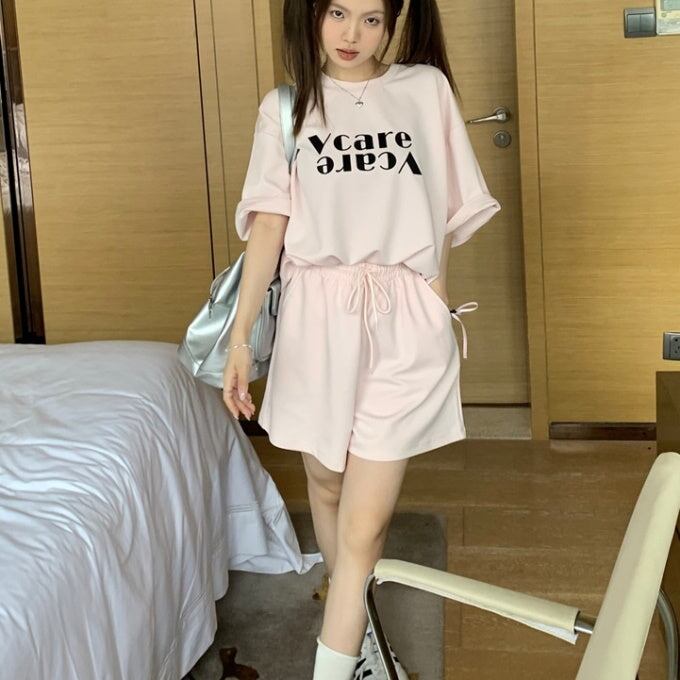 セットアップ ショートパンツ Tシャツ レディース 韓国 ファッション 夏セットアップ ラウンジ ロゴプリント 白 ピンク ハーフパンツ スポーツミックス おしゃれ 夏コーデ
