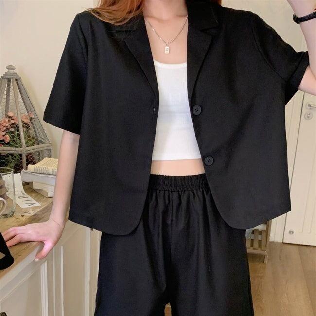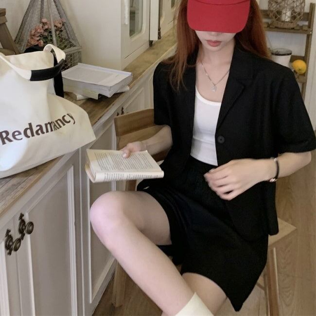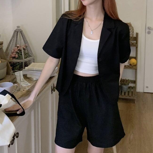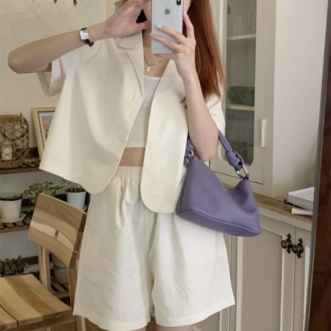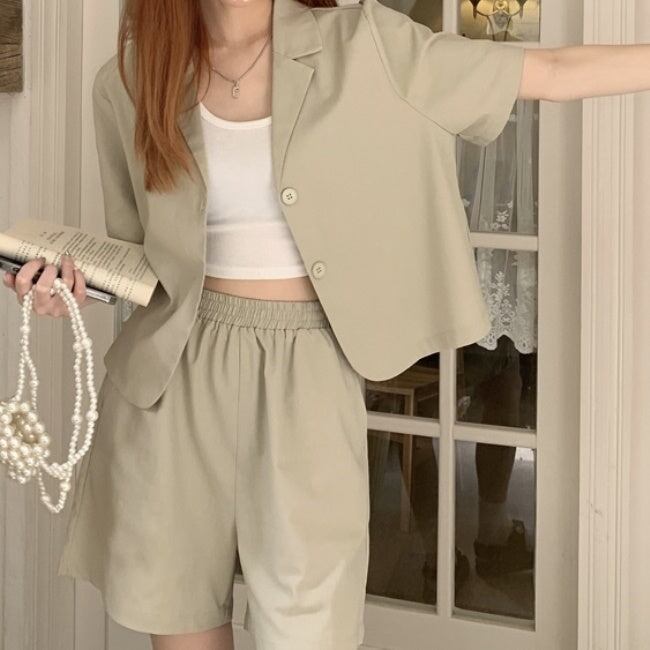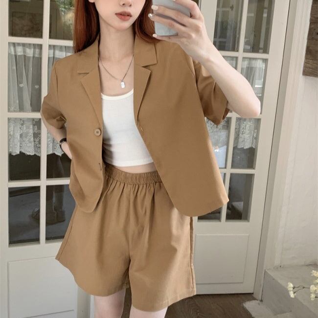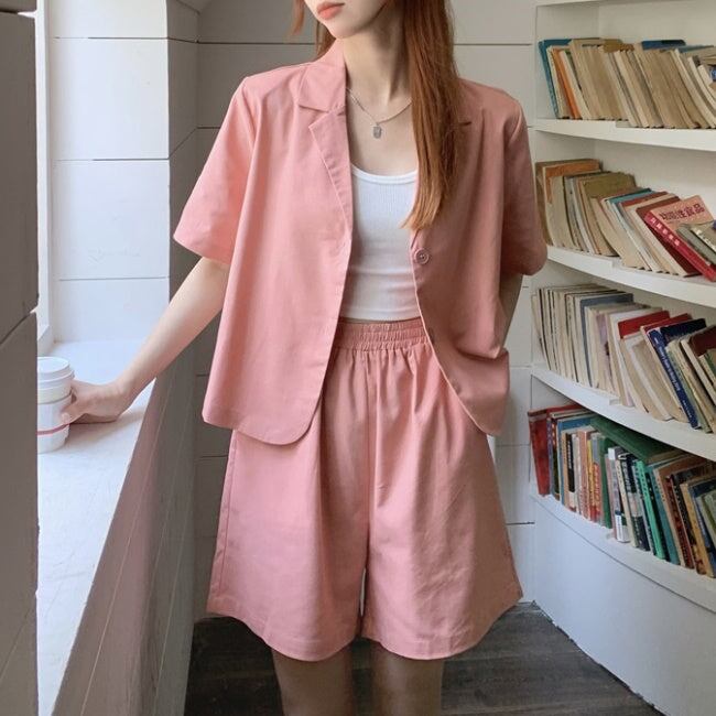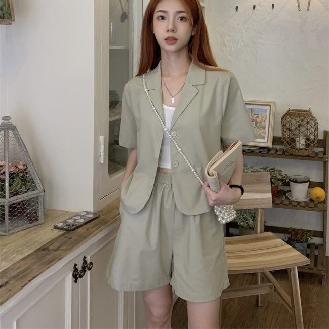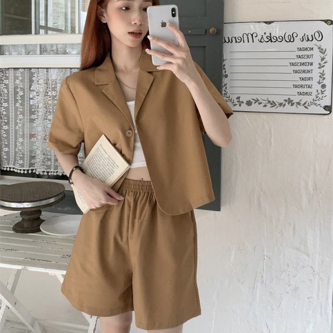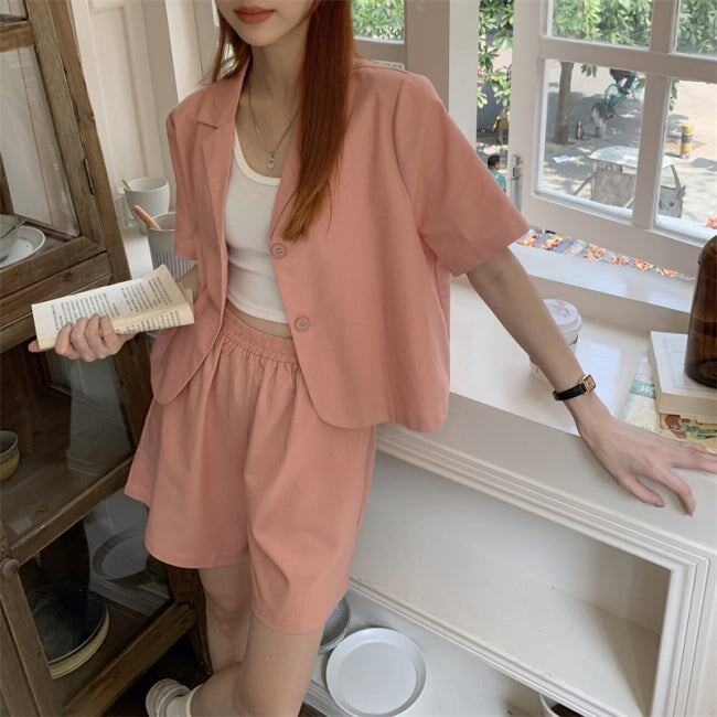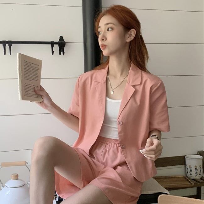 セットアップ スーツ 夏ジャケット レディース 韓国 ファッション 無地 ハーフパンツ? 上下セット テーラードジャケット ショートパンツ ニュアンスカラー くすみカラー