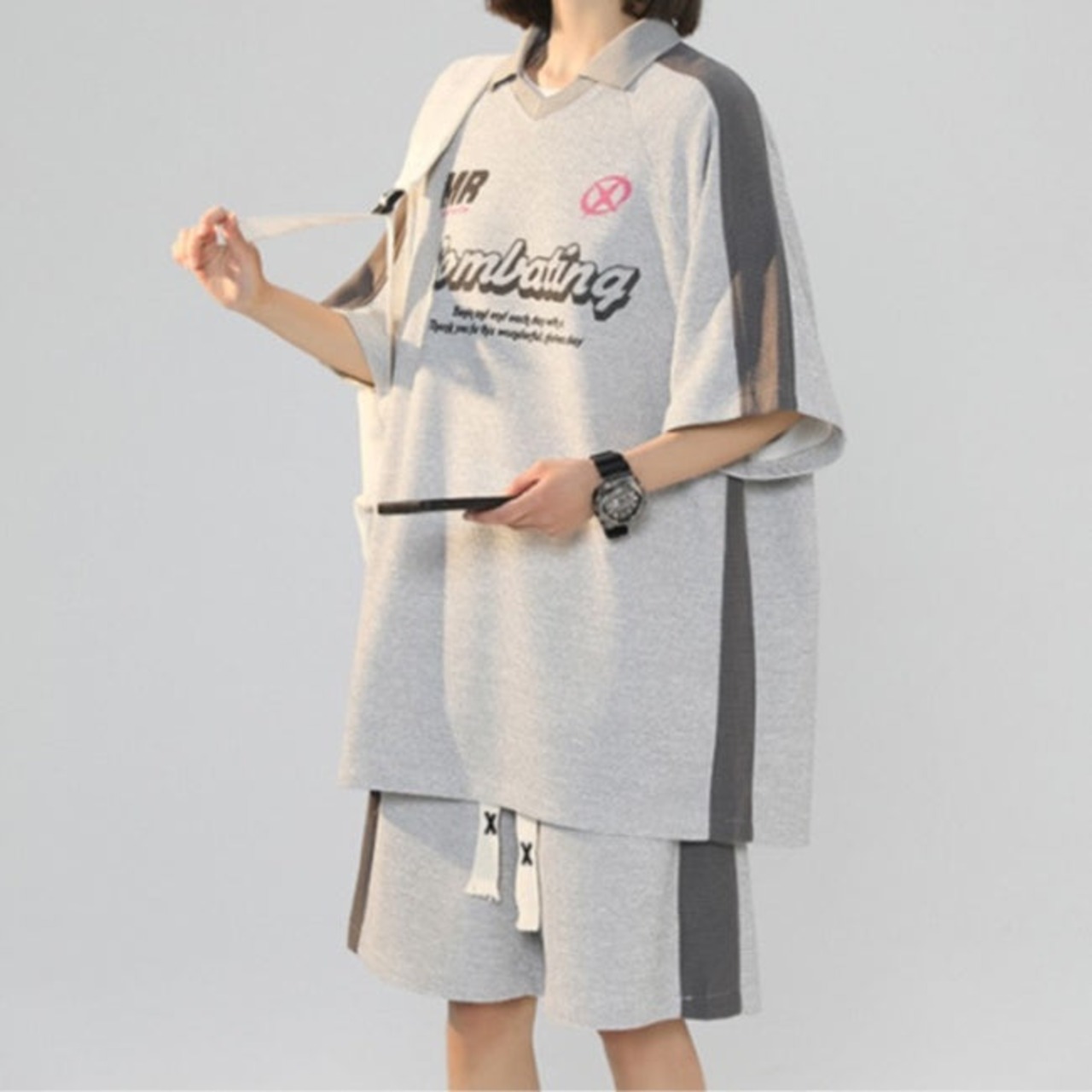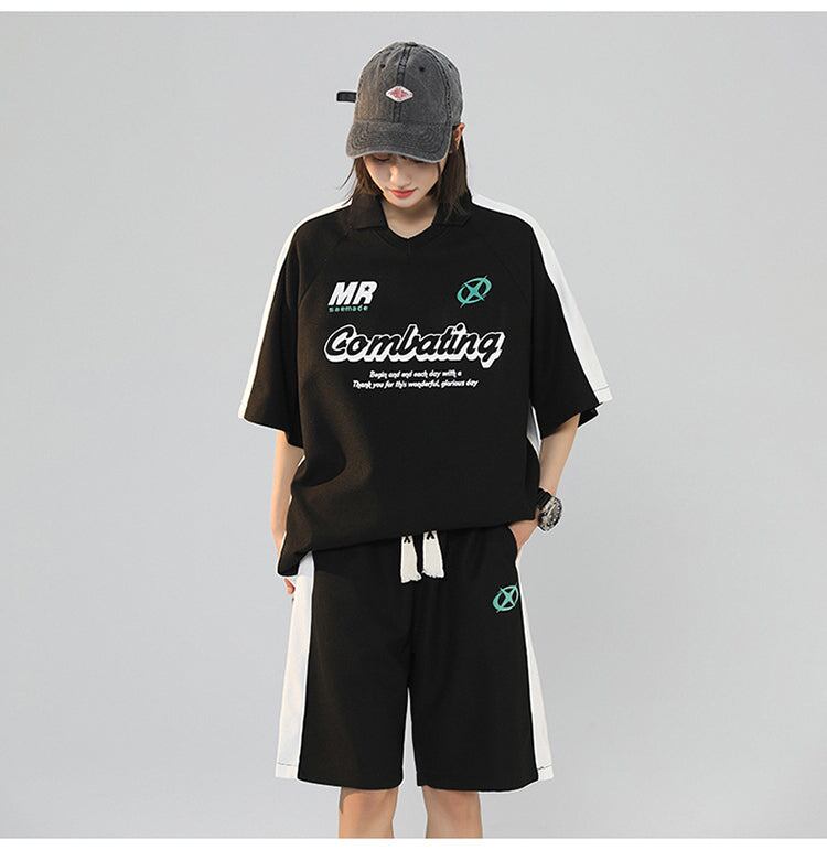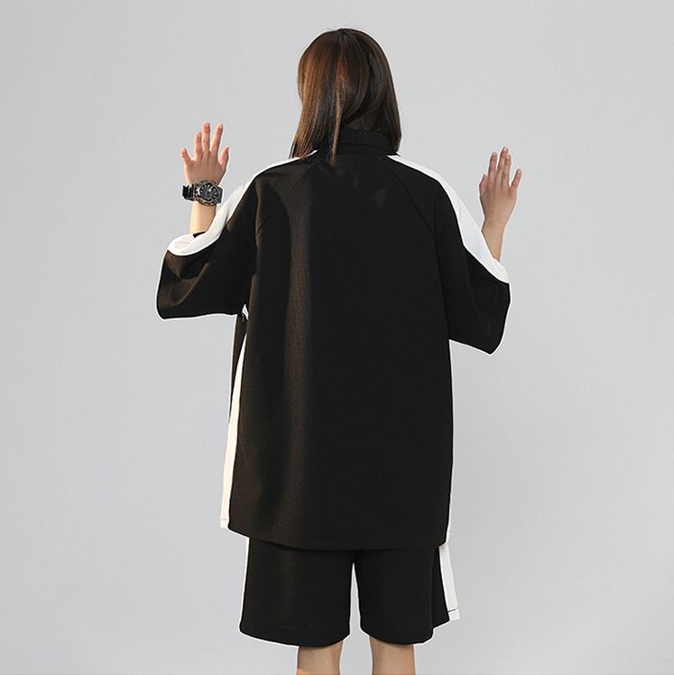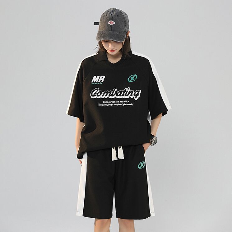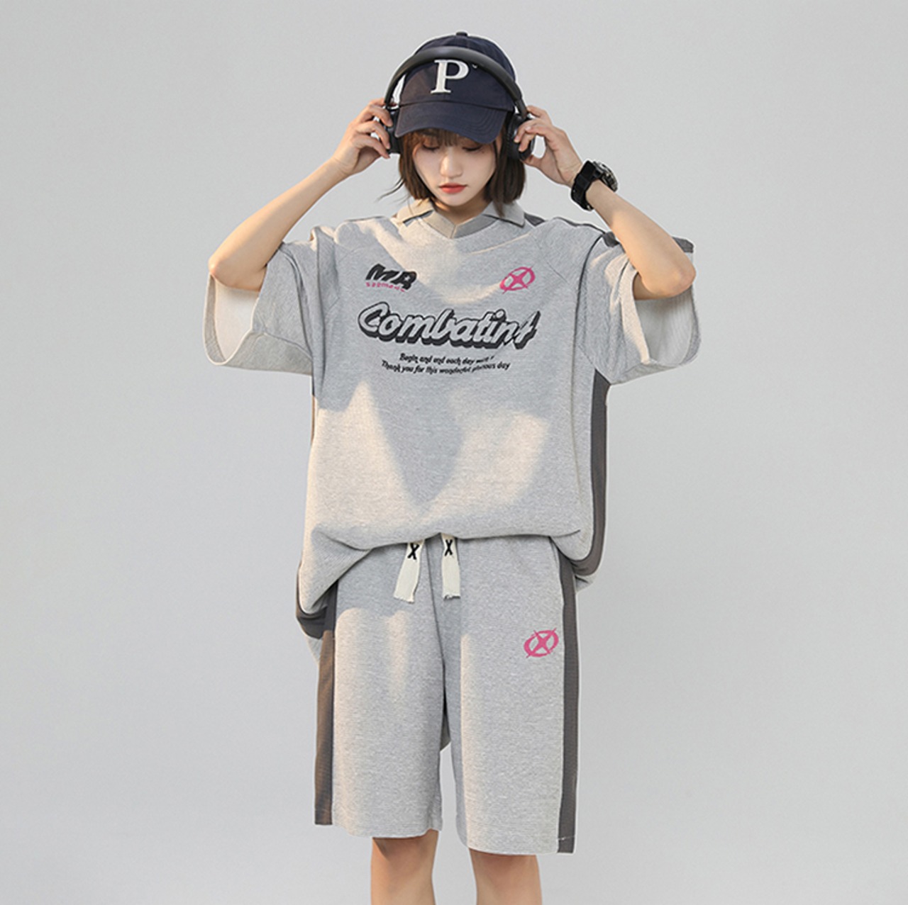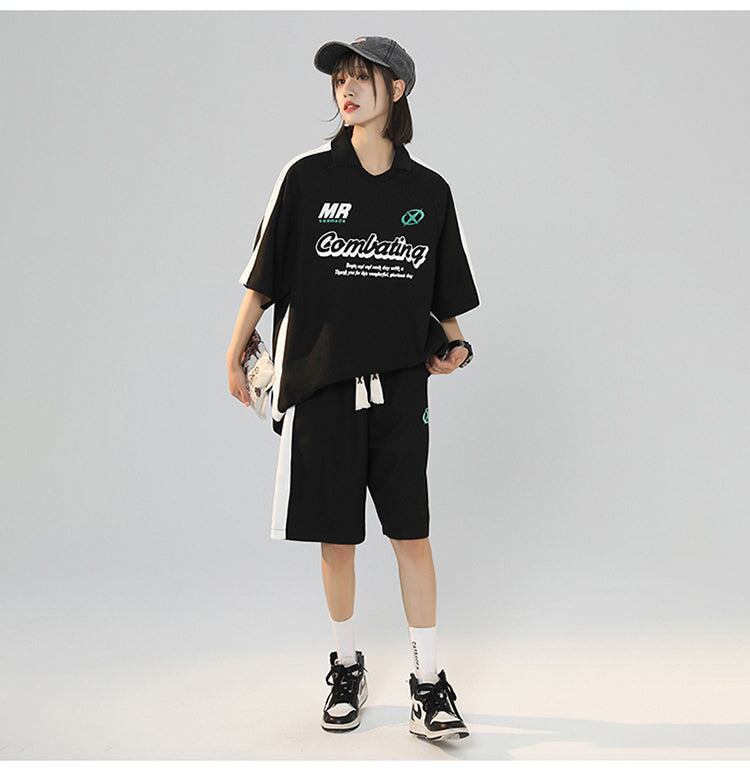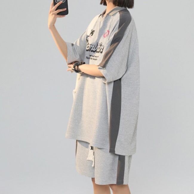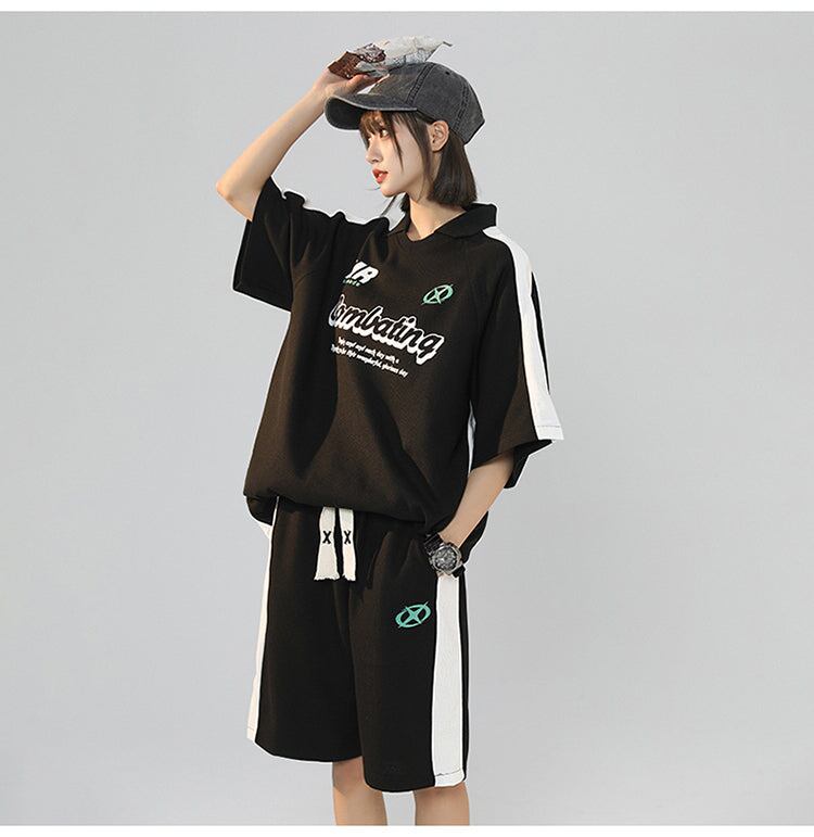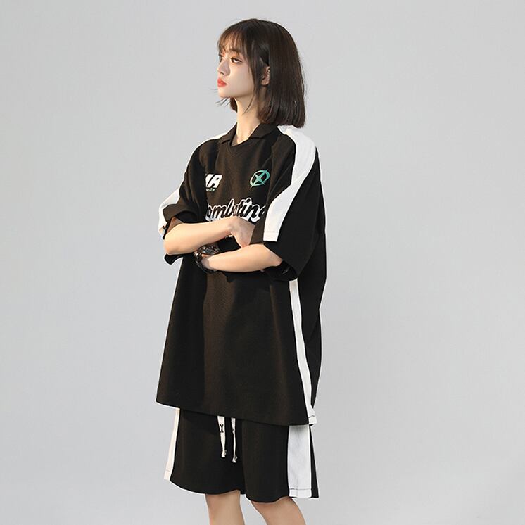 セットアップ ハーフパンツ ポロシャツ レディース 韓国 ファッション ビッグシルエット サイドライン スポーツ ラウンジ 半袖 ショートパンツ ゆったり ビッグシルエット ダンス