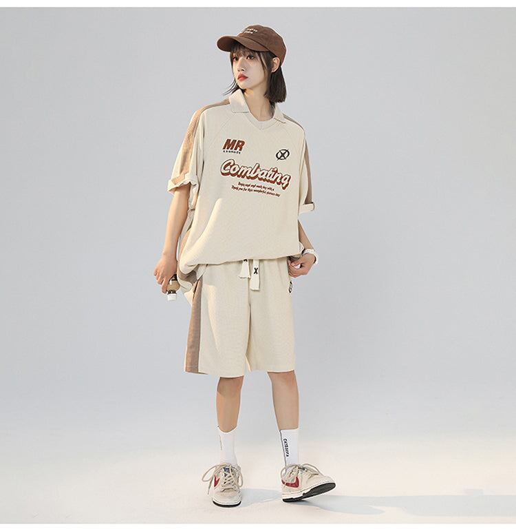 セットアップ レディース 韓国 ジャージ 夏 オーバーサイズ 半袖 ポロシャツ ハーフパンツ 上下セット ストリート スポーツウェア