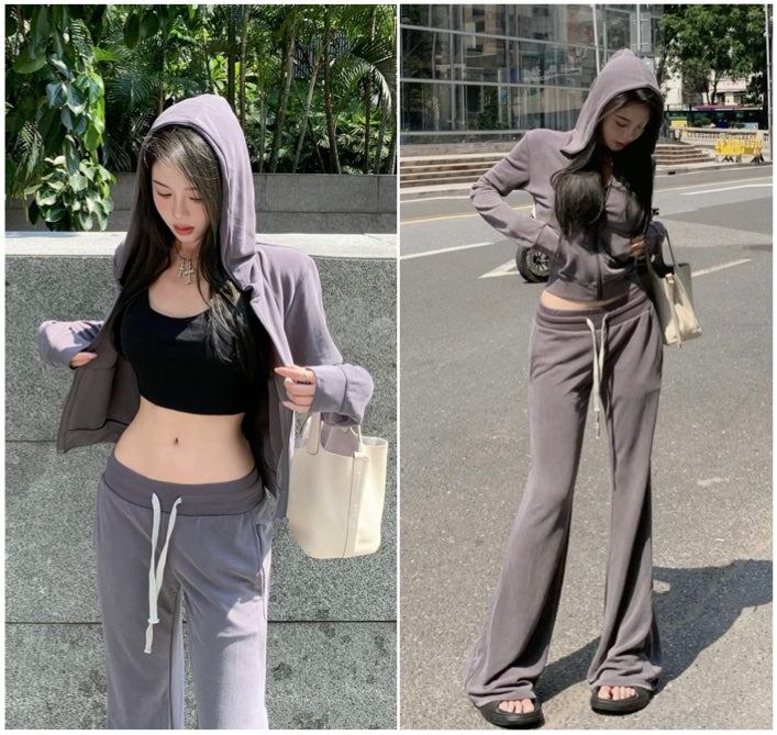 クロップパーカーとロングパンツのスウェット上下