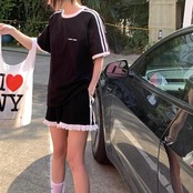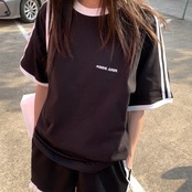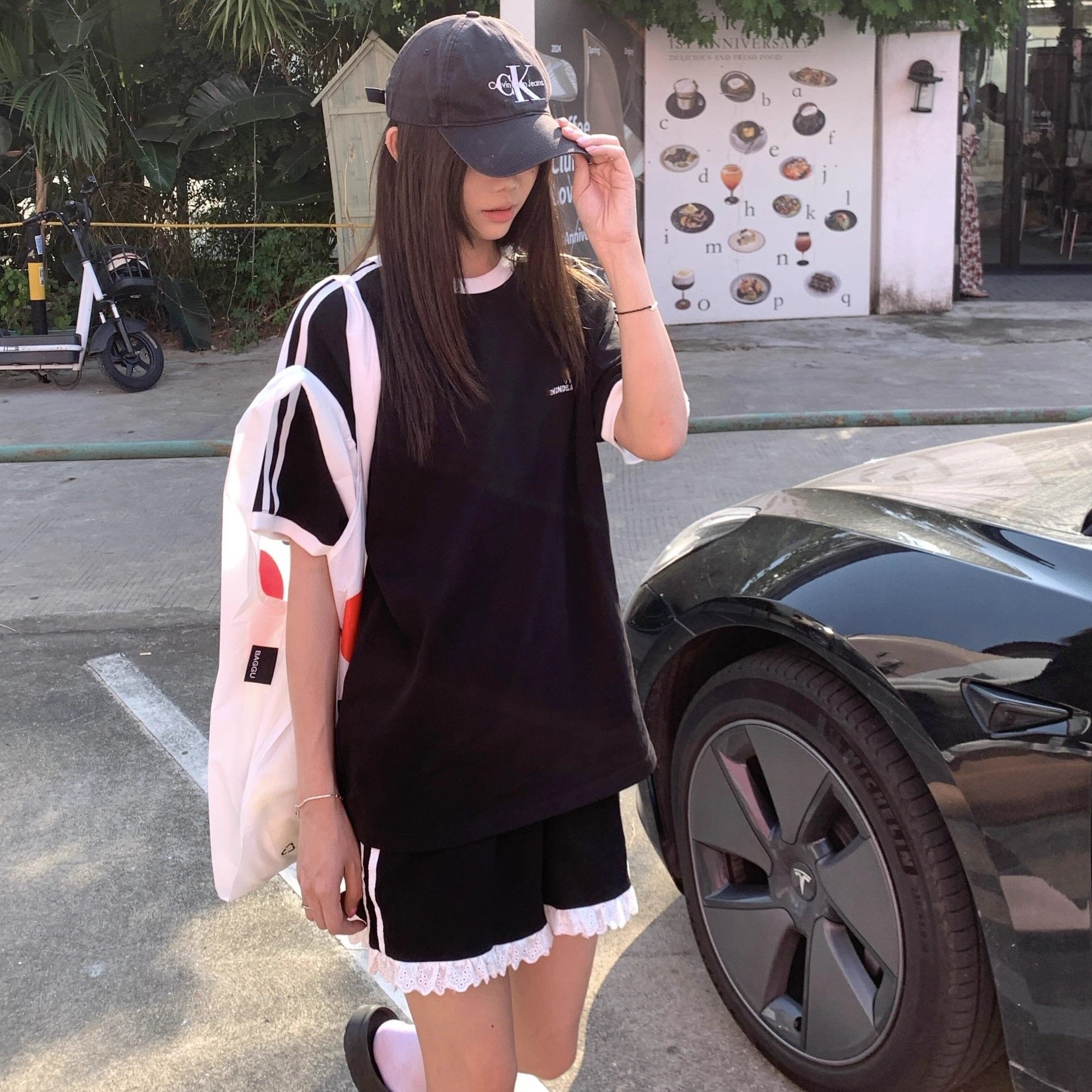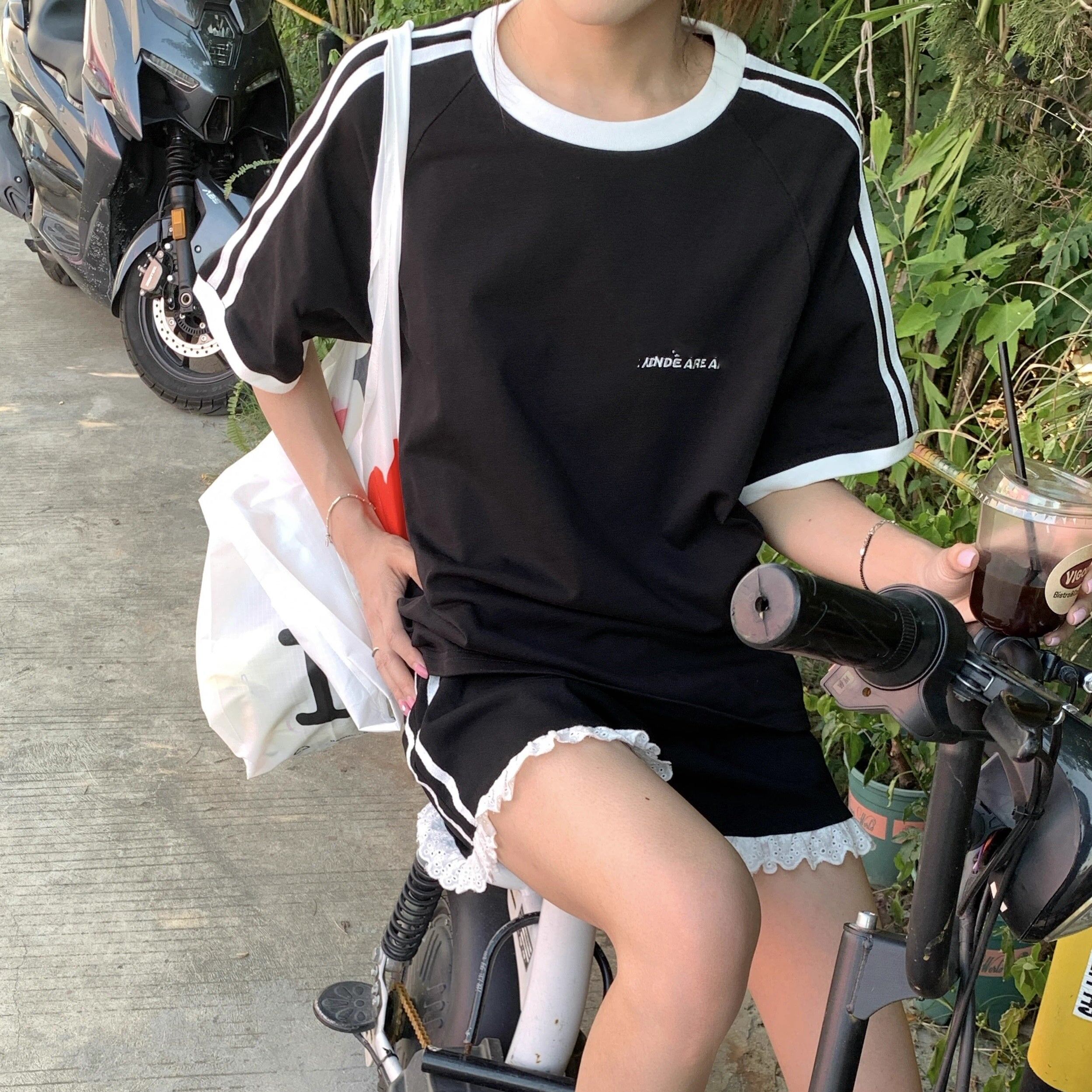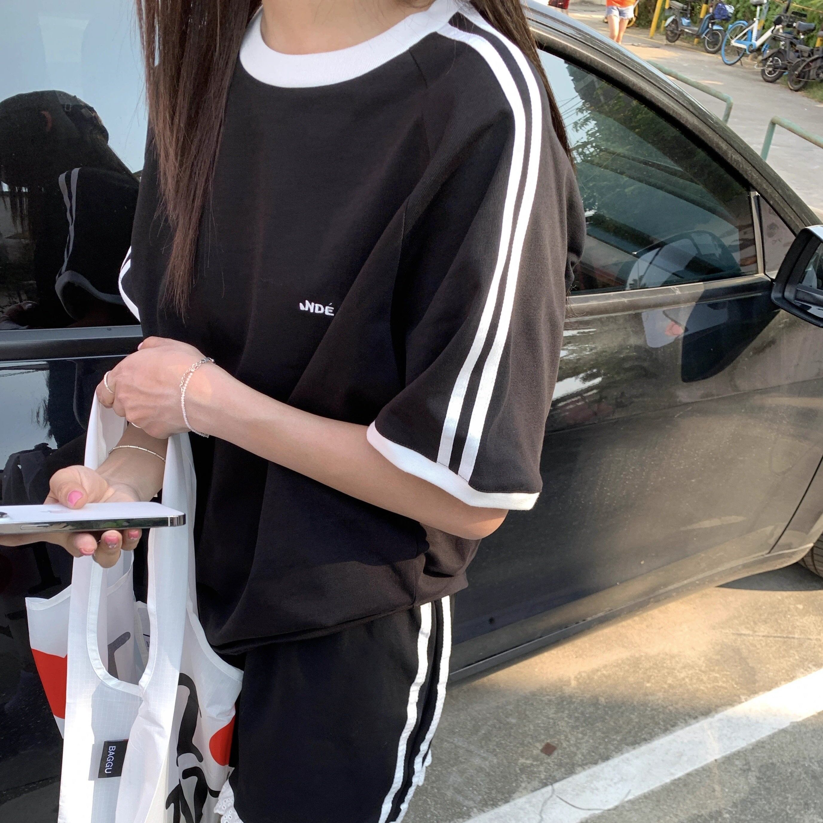 セットアップ レディース Tシャツ ハーフパンツ 上下セット 韓国 ファッション ロゴ オーバーサイズ ラインTシャツ ライン ショートパンツ 上下セット