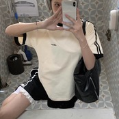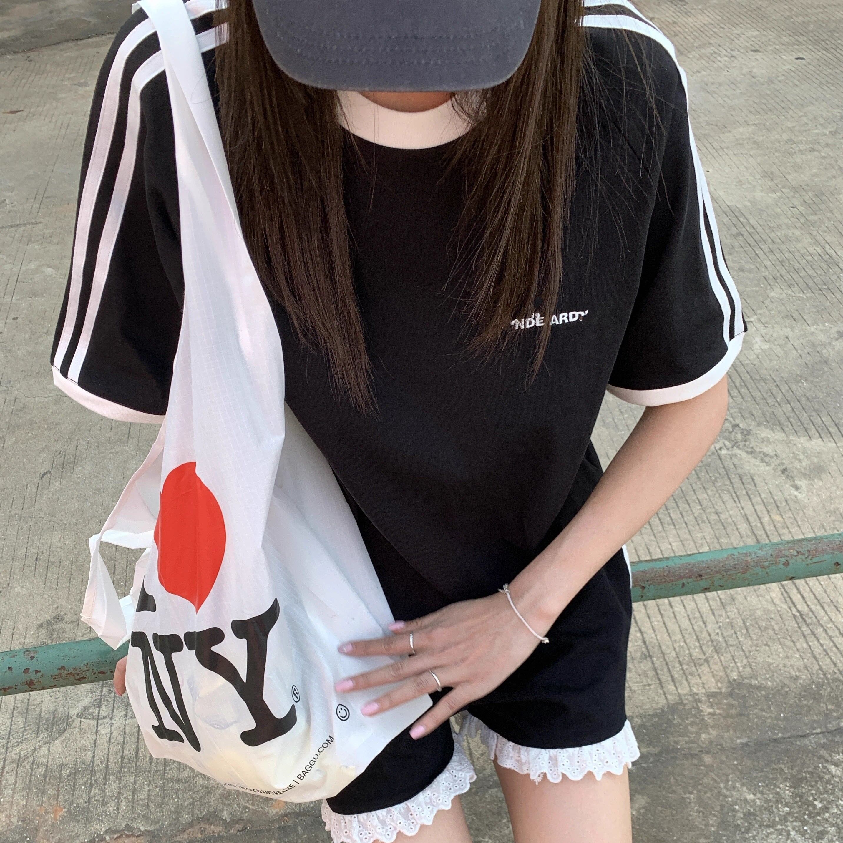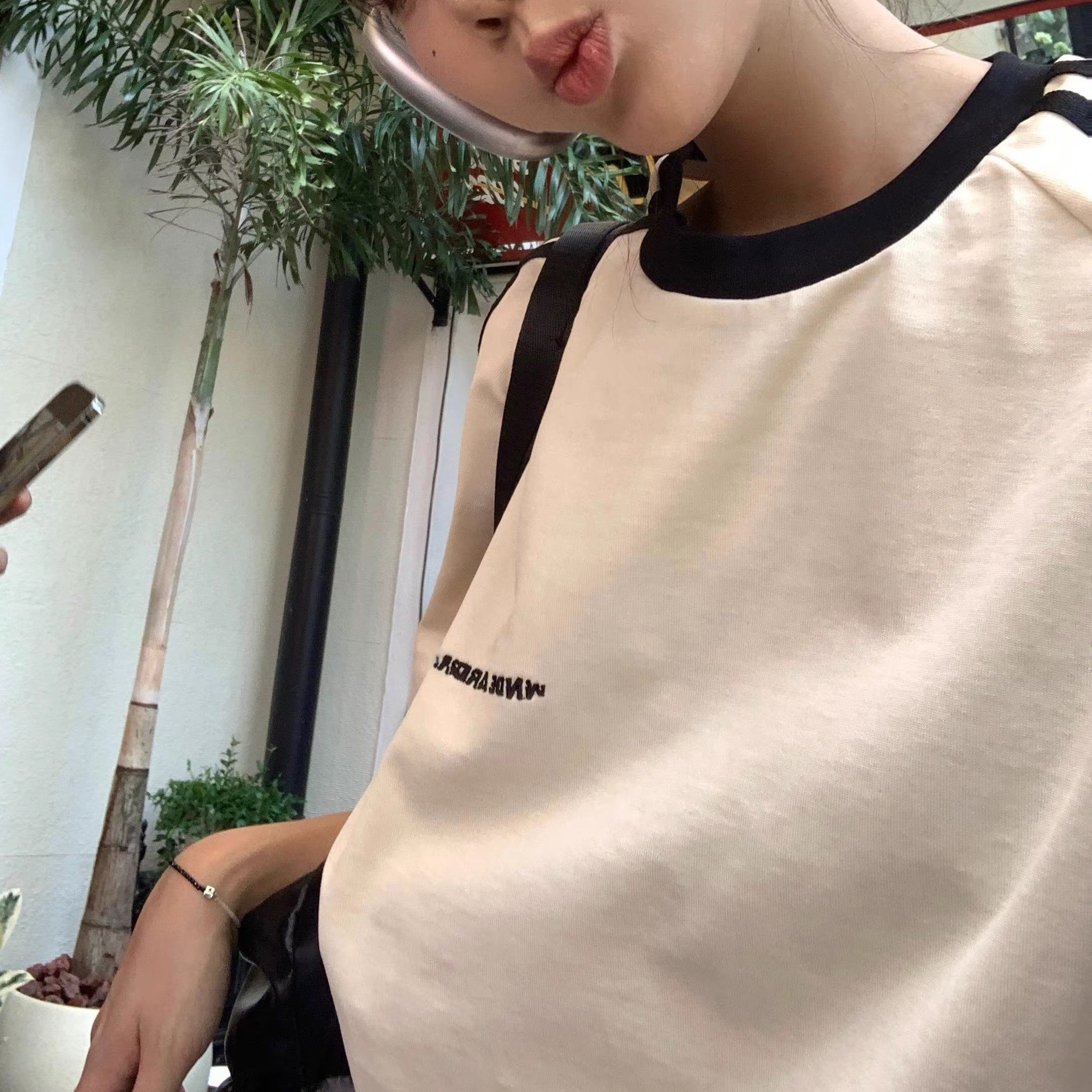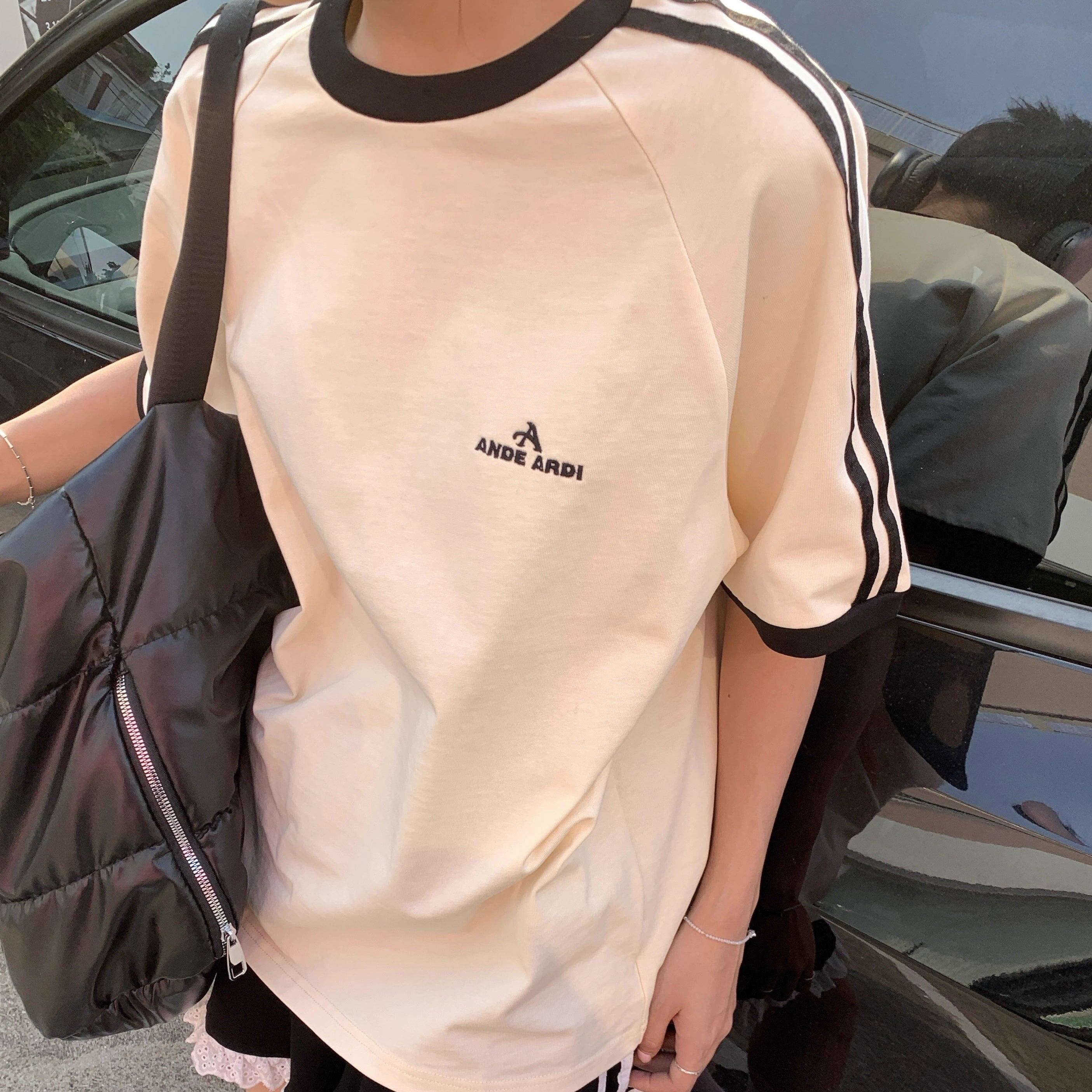 Tシャツ リンガー レディース 韓国 ファッション ロゴ オーバーサイズ モノトーン ストリート カジュアル
