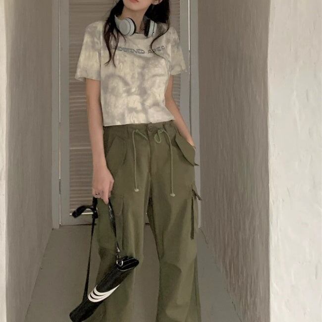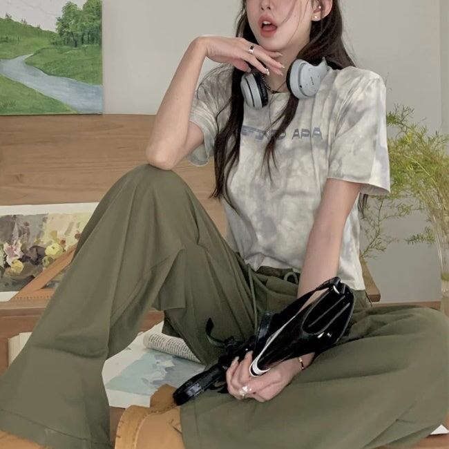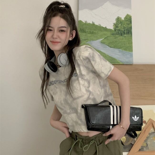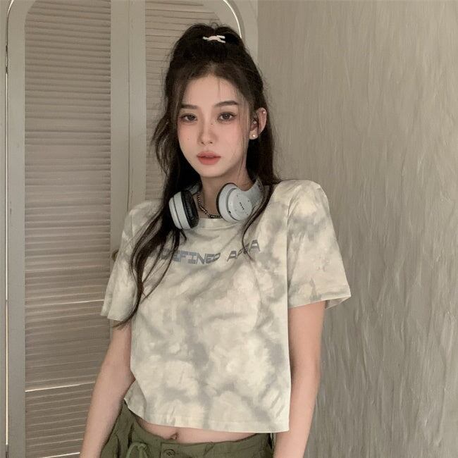Tシャツ タイダイ レディース 韓国 ファッション 半袖 ロゴトップス 絞り染め 夏Tシャツ 柄プリント