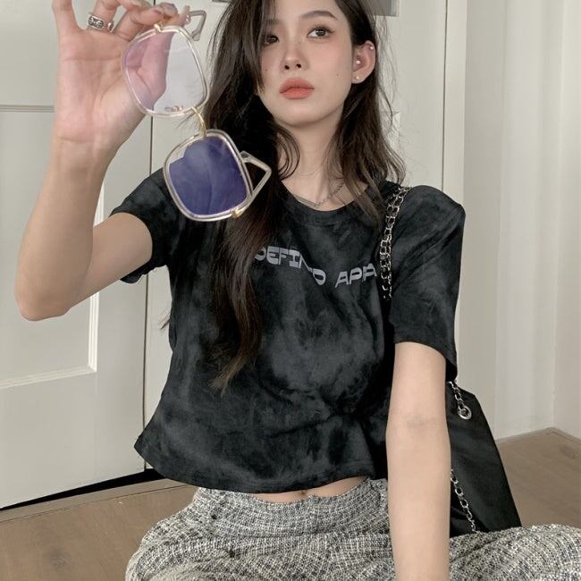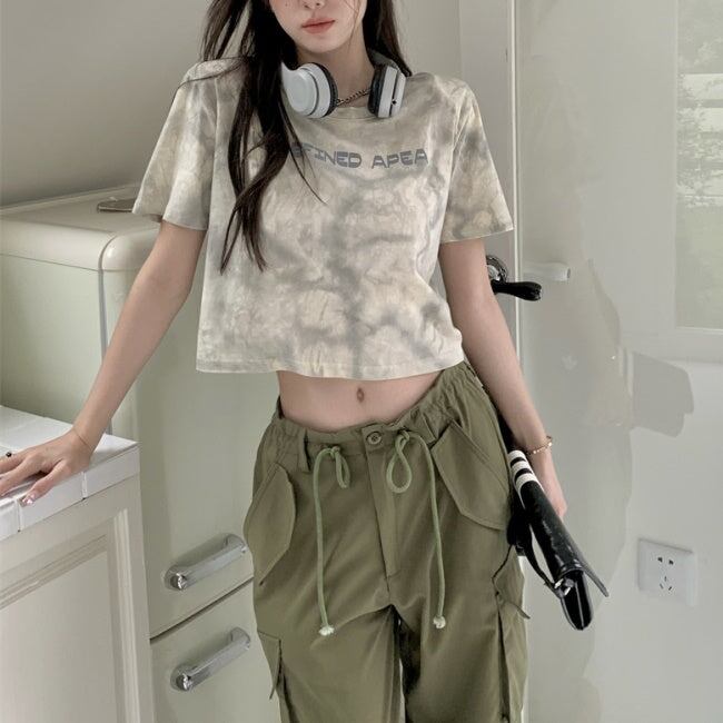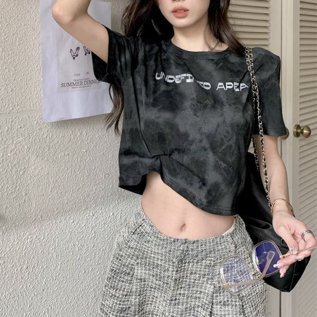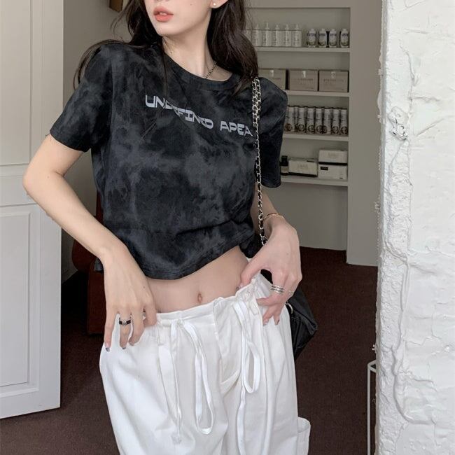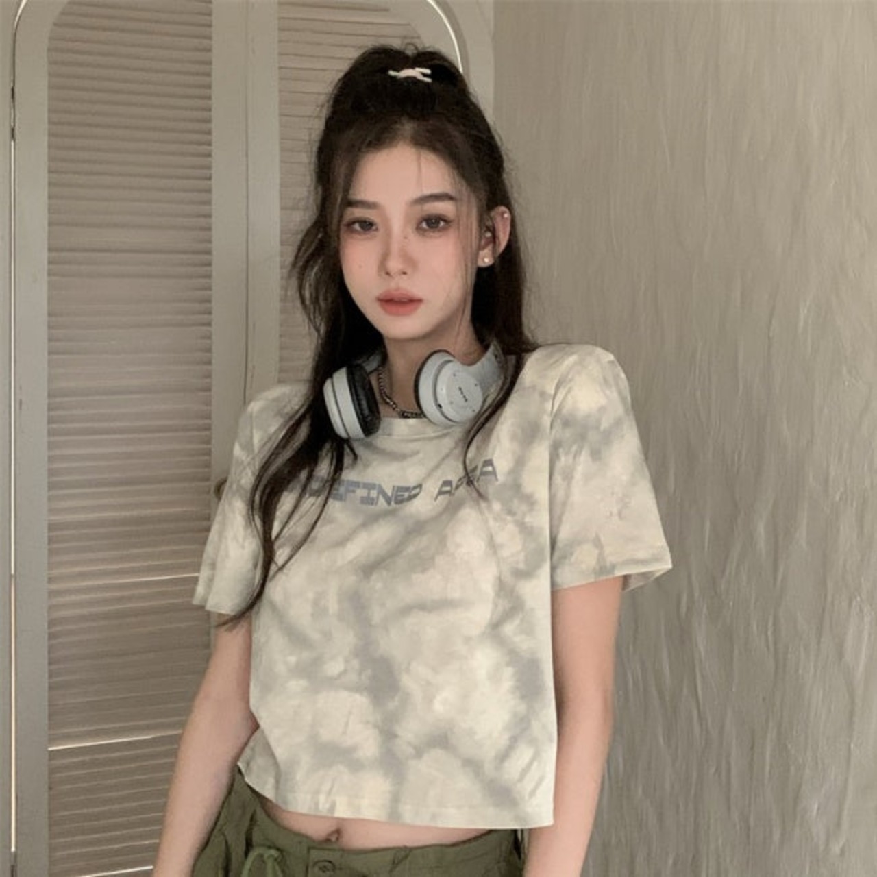 タイダイ T シャツ レディース 韓国 ファッション 絞り染め クロップド ロゴT