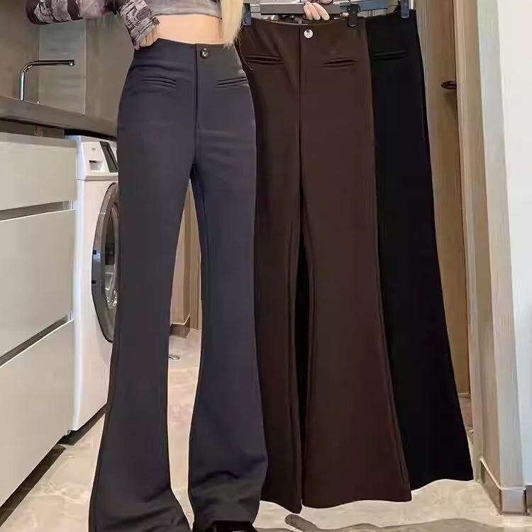 ロングパンツ レディース 韓国 ファッション ストレッチ フレア 無地 伸縮 タイトフィット おしゃれ デイリー