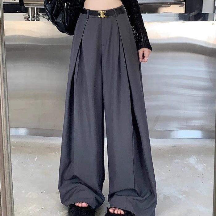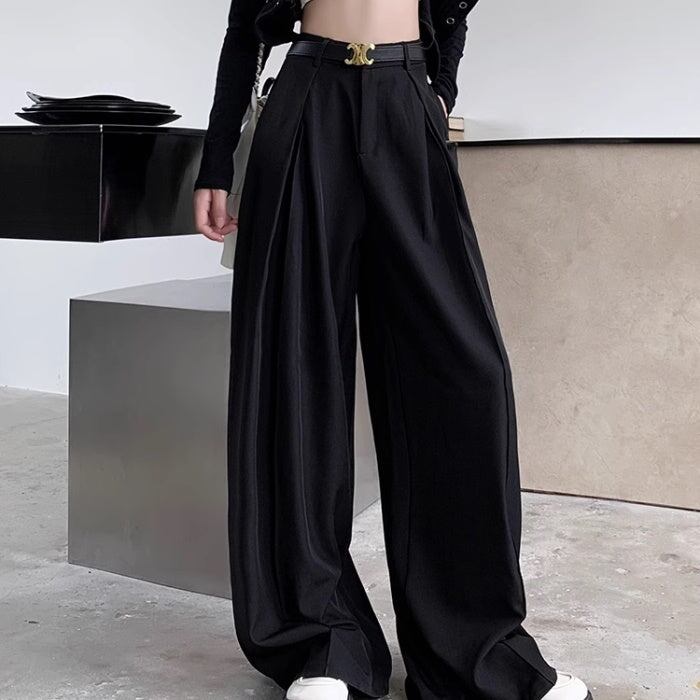 タック ワイドパンツ レディース 韓国 ファッション タックパンツ 秋冬 ボリュームパンツ