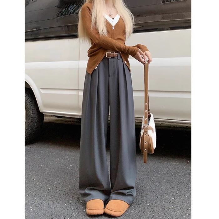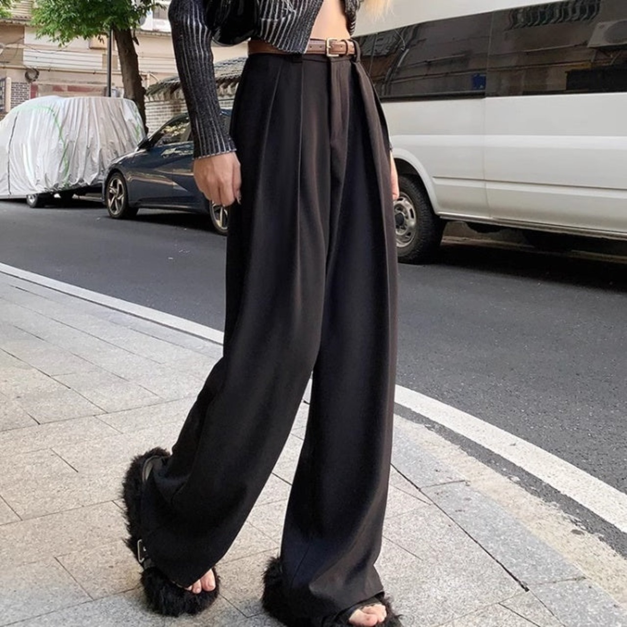 タック ワイドパンツ レディース 韓国 ファッション タックパンツ 上品 秋冬 カジュアルパンツ