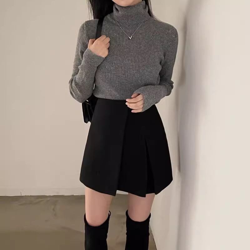 タートルニット レディース 韓国 ファッション 長袖 秋冬トップス 無地 シンプル ベーシック