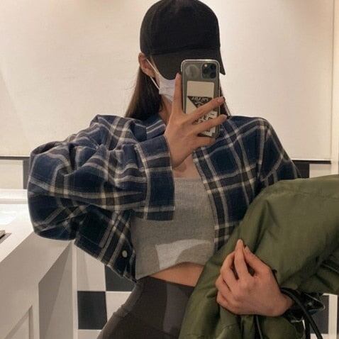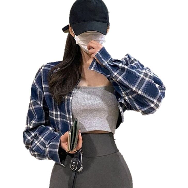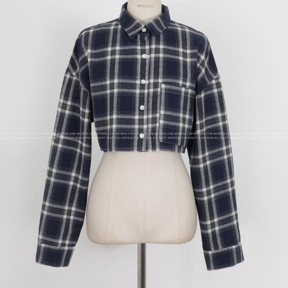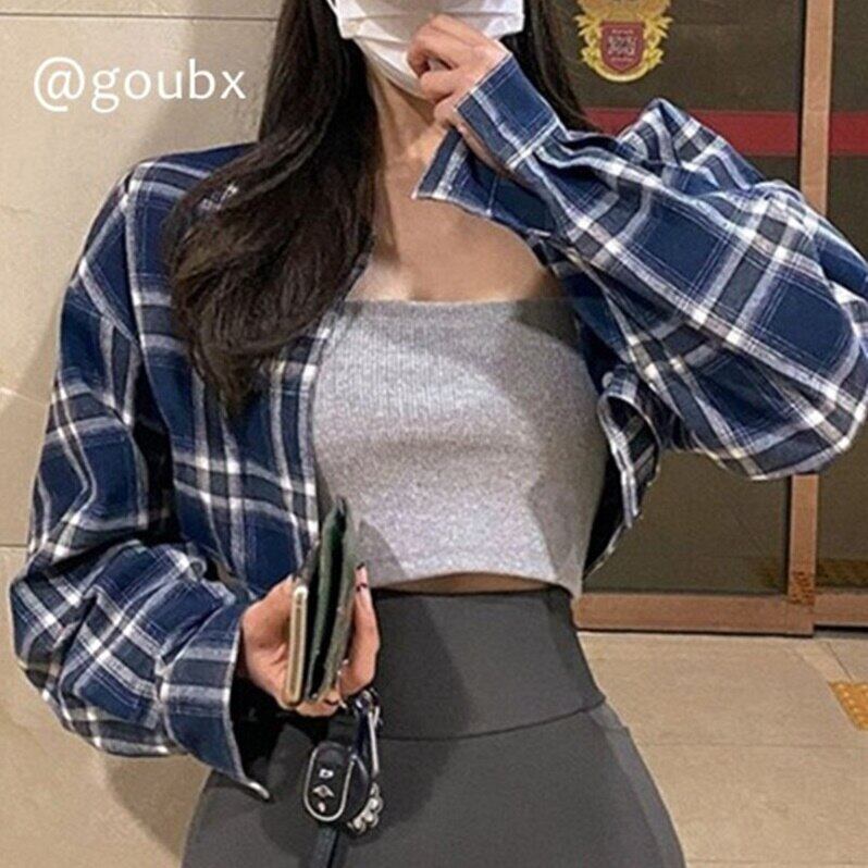 チェック クロップド シャツ レディース 韓国 ファッション 春アウター タータンチェック ショート