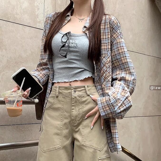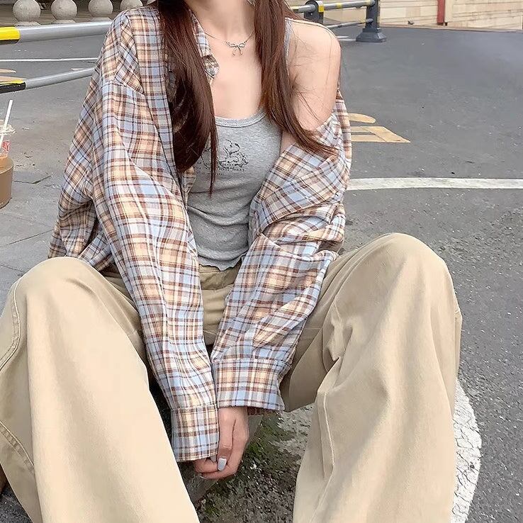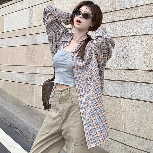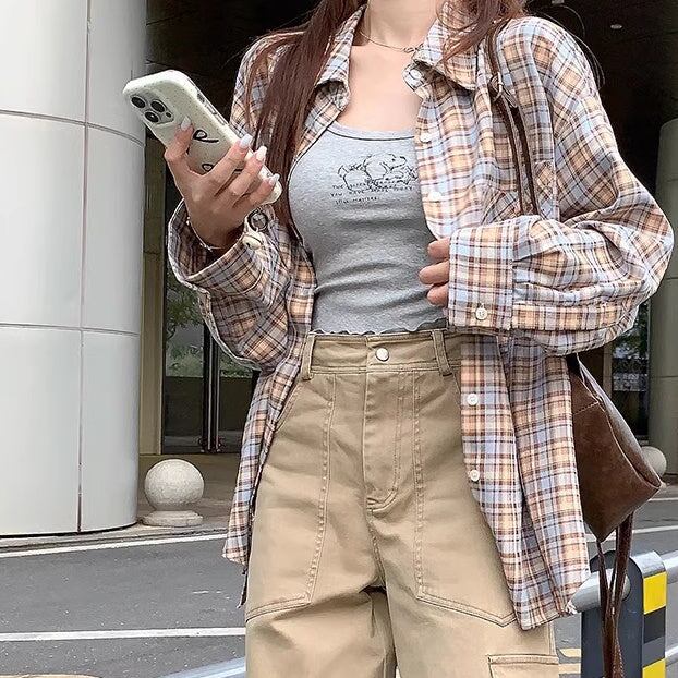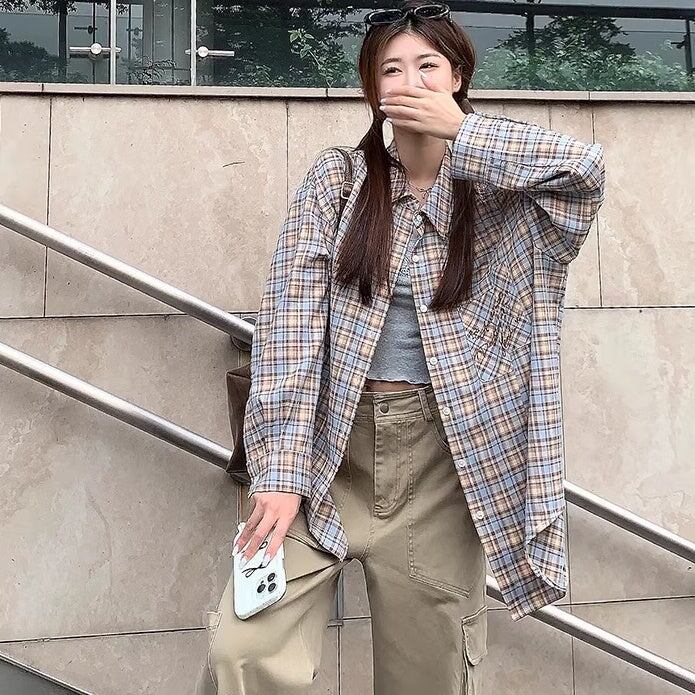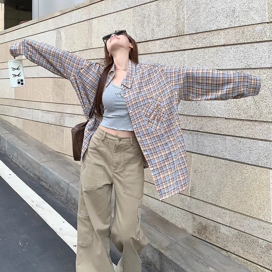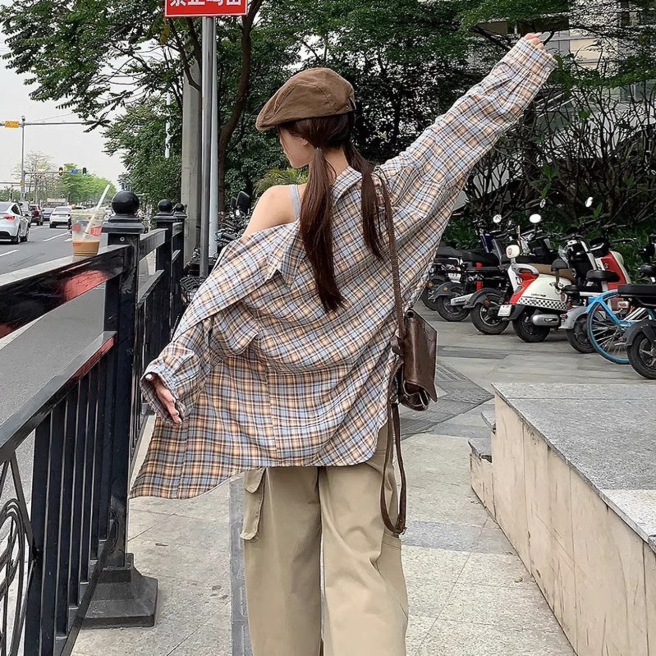 シャツ 長そで レディース 韓国 ファッション カバーシャツ チェック柄 おしゃれ メンズライク かわいい オーバーサイズ