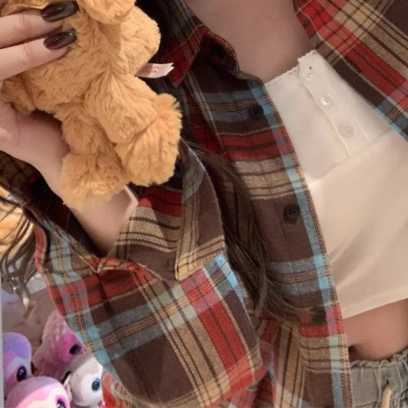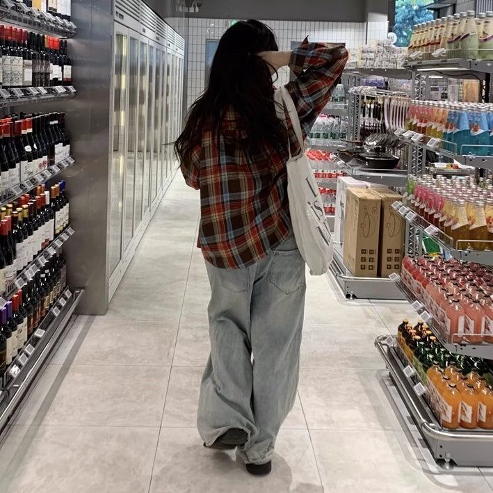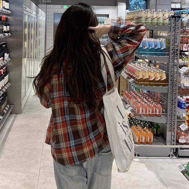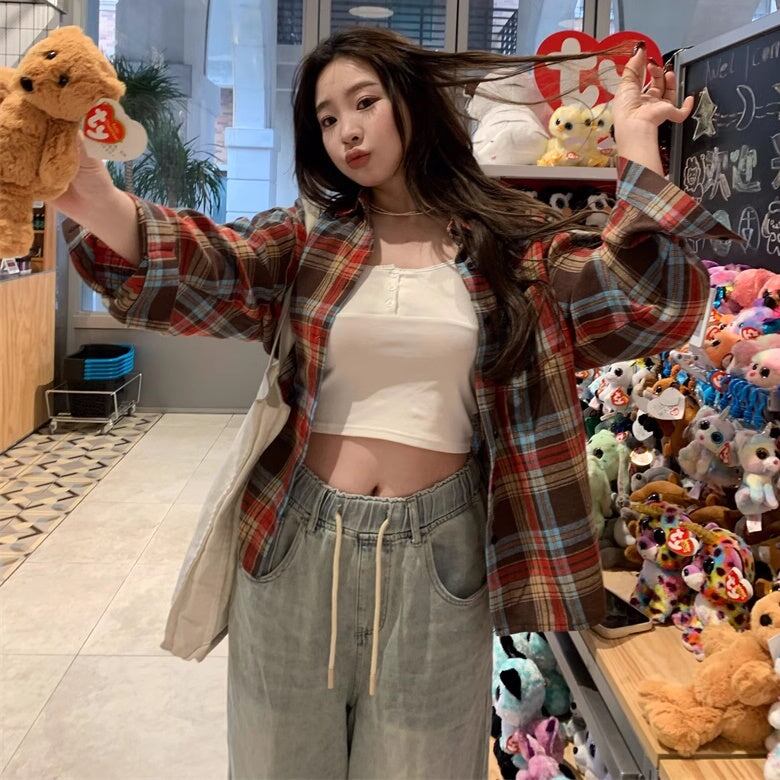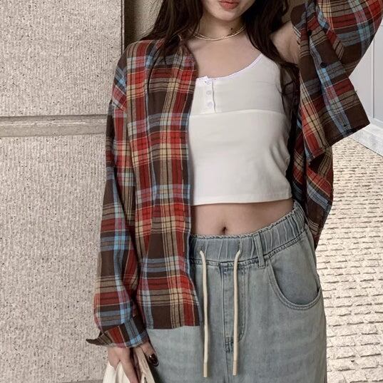 チェックシャツ レディース 韓国 ファッション カバーアップ 長袖シャツ マドラスチェック かわいい 春 柄シャツ