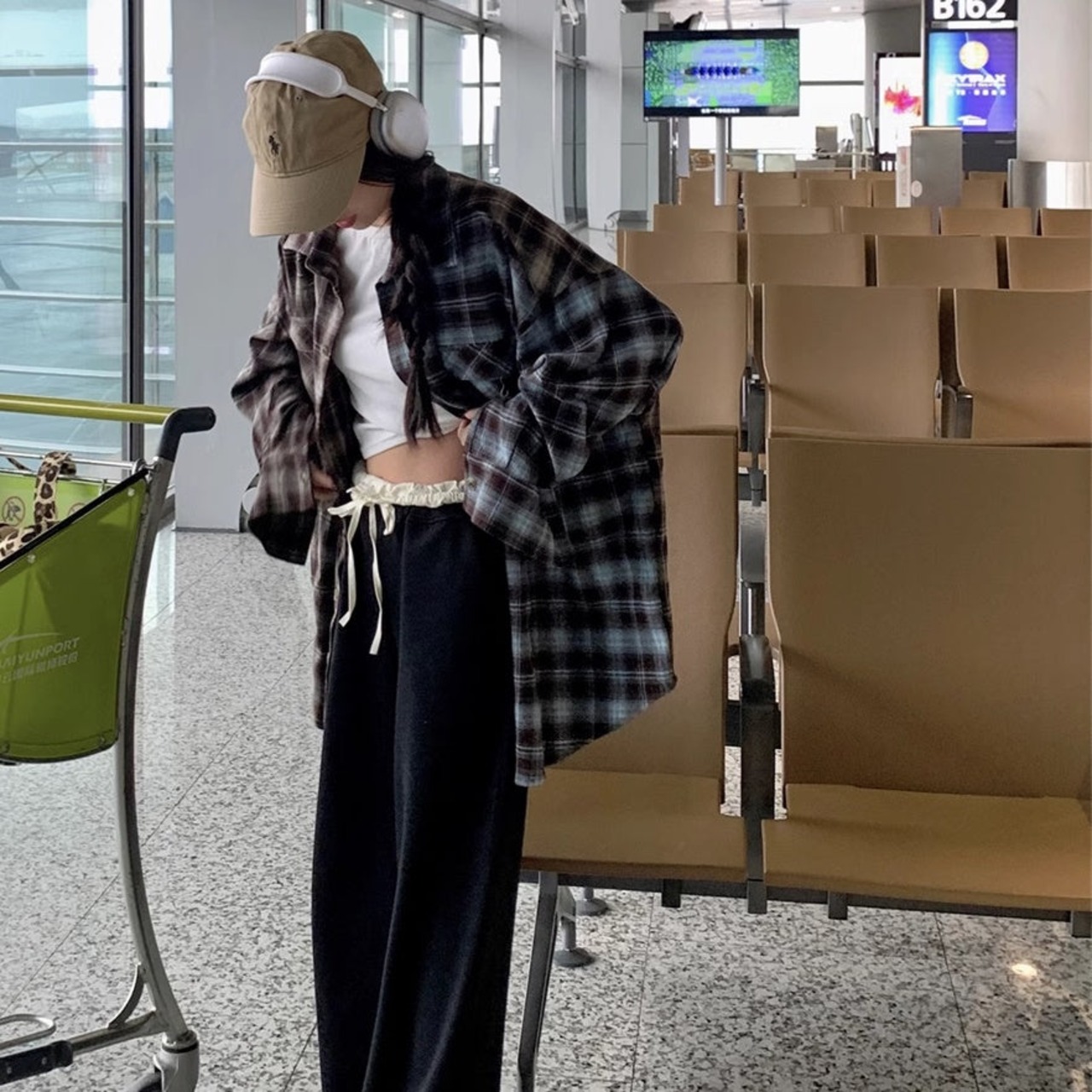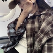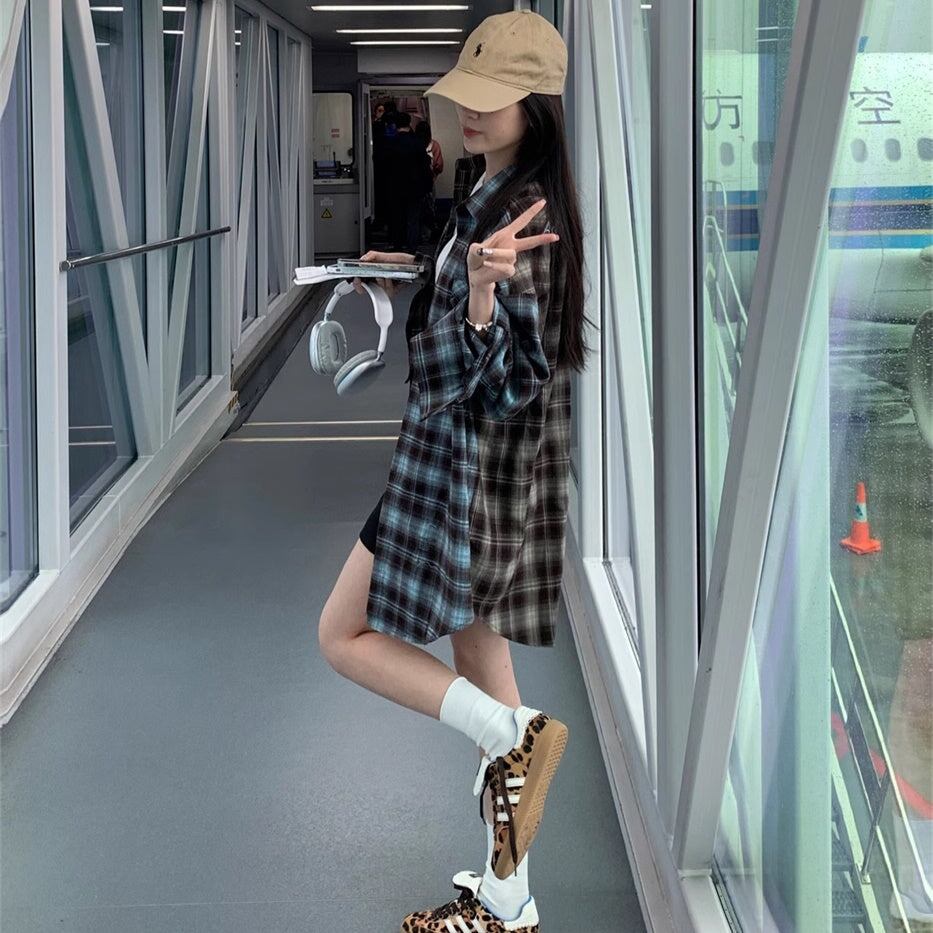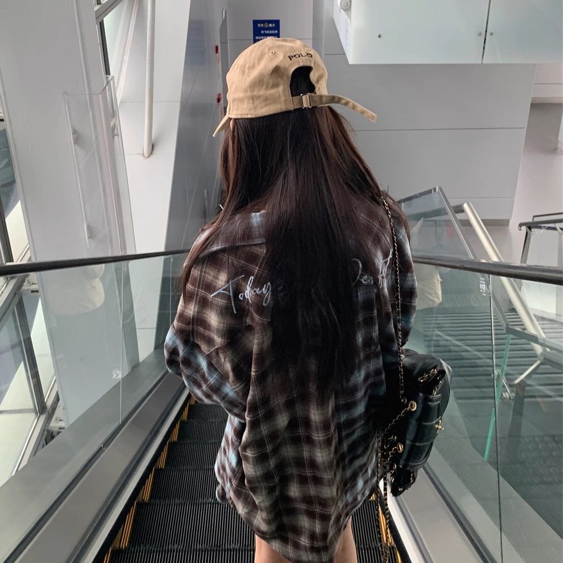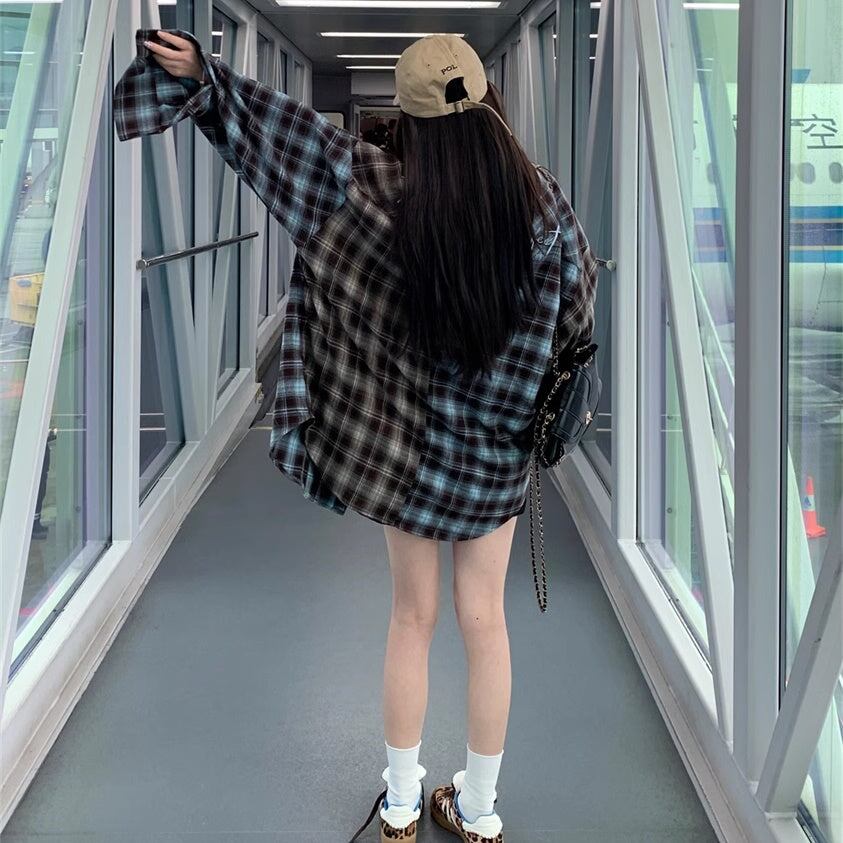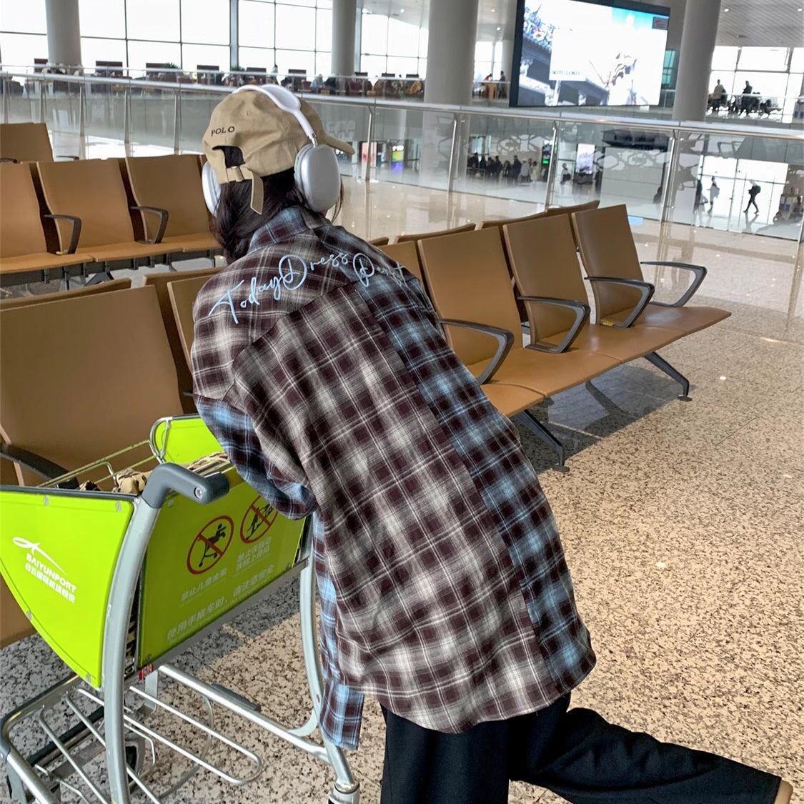 チェックシャツ レディース 韓国 ファッション ビッグシルエット バックロゴ 刺繍 オーバーサイズ 長袖 シャツ
