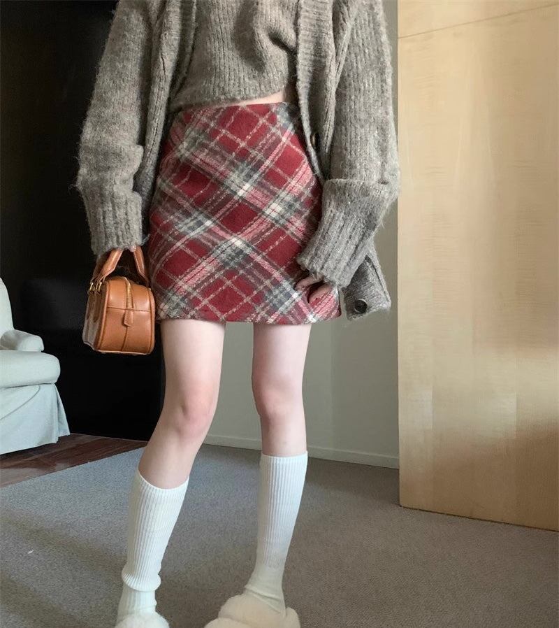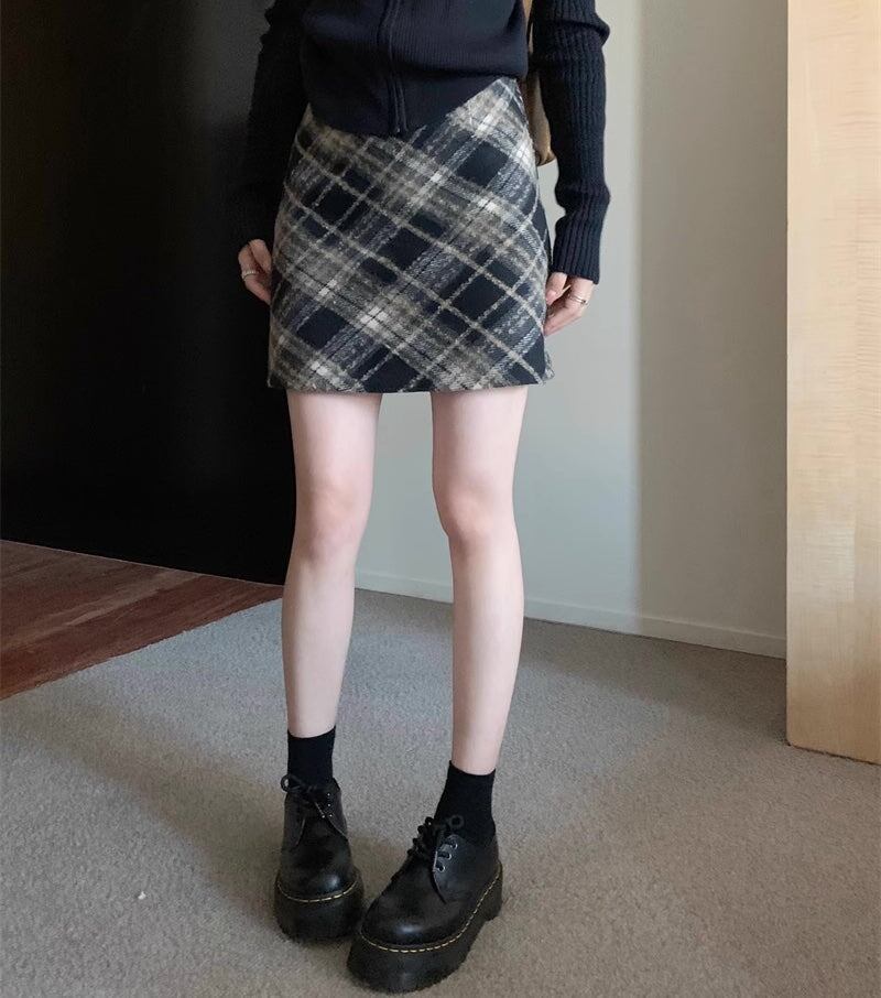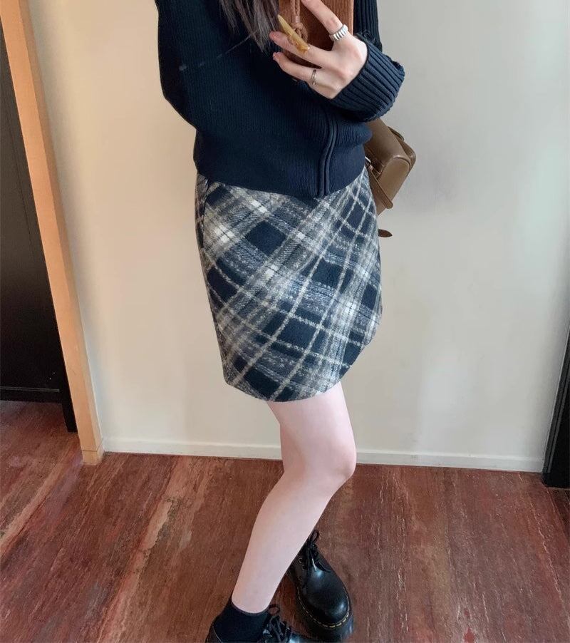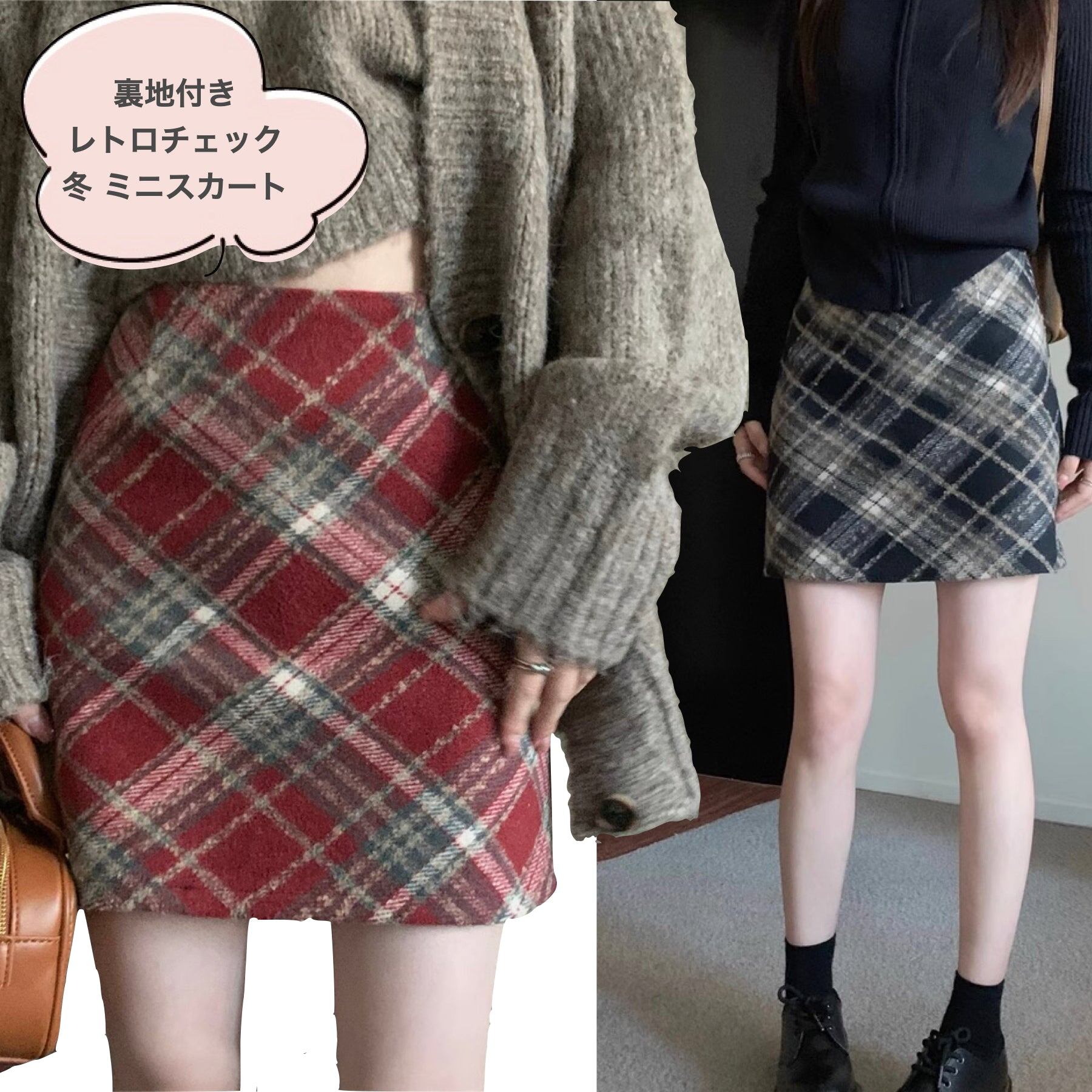チェック柄 ミニスカート レディース 韓国 ファッション 秋冬 台形スカート ダイヤ柄 プレッピー