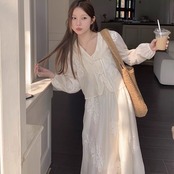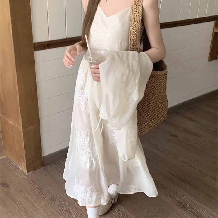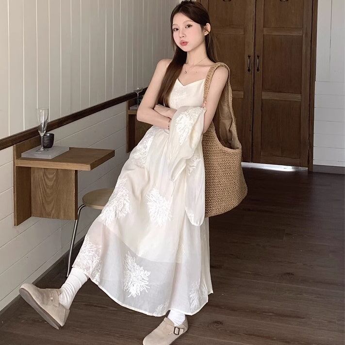 チャイナドレス ワンピース セット レディース 韓国 ファッション キャミワンピース ボレロ 2点セット 刺繍 白ドレス