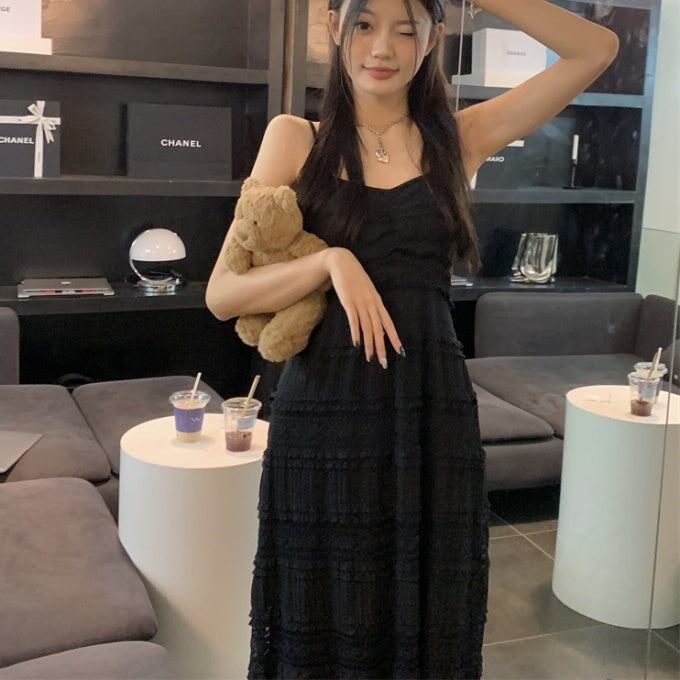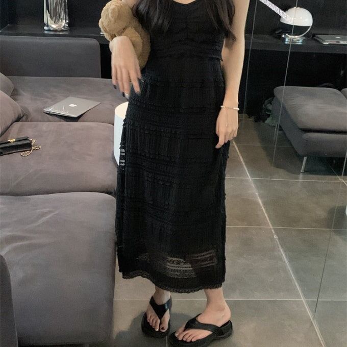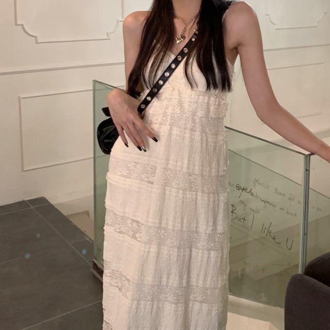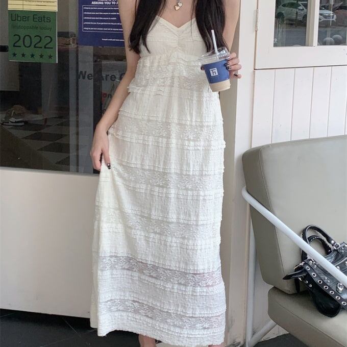 ティアード キャミワンピース レディース 韓国 レース ノースリーブ ワンピース すけ感 サマードレス