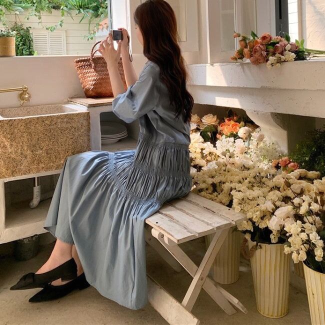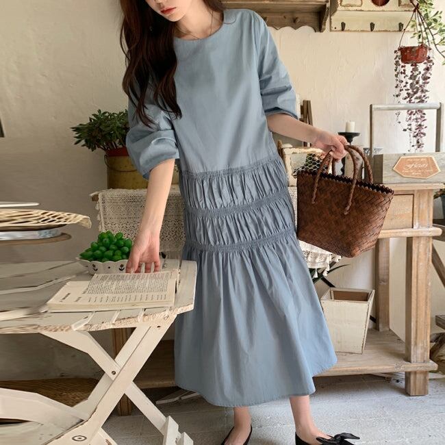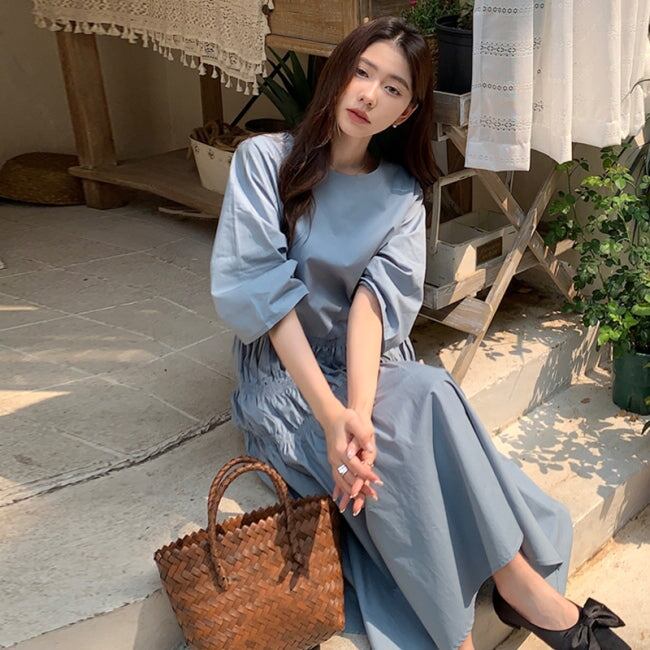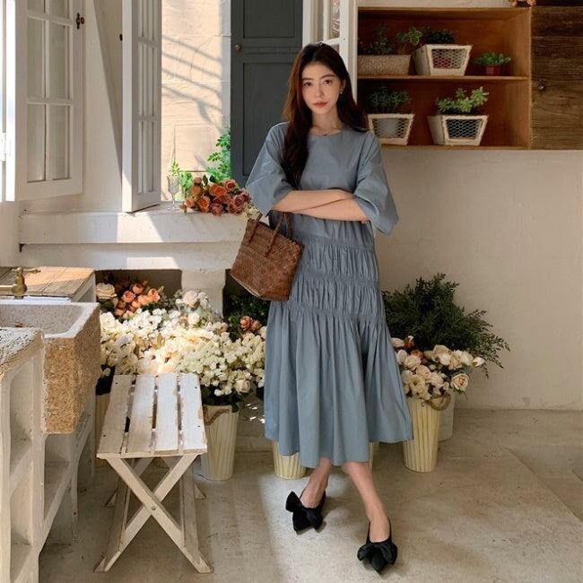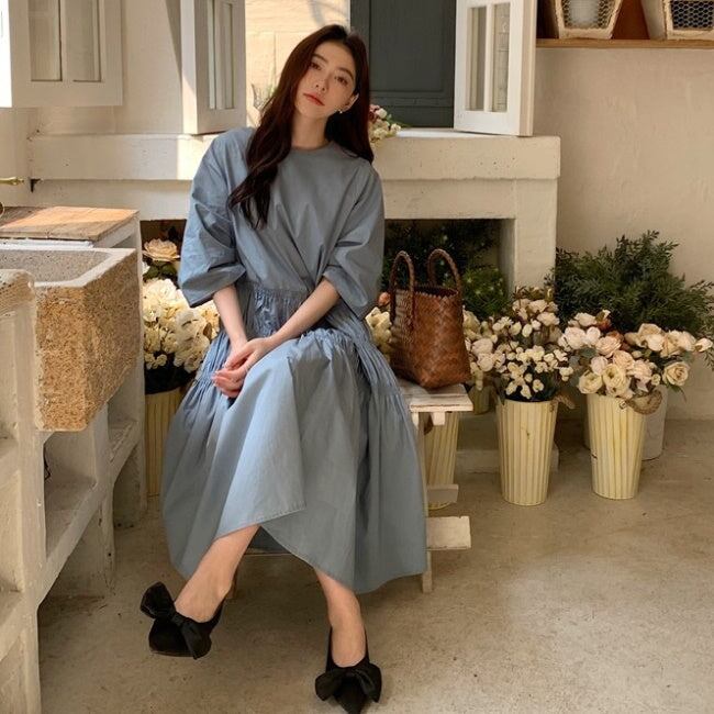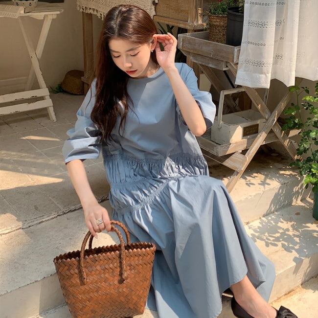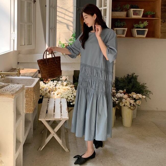 テヒアード ワンピース 韓国 ファッション レディース 5分袖 ゆったり ロングワンピース