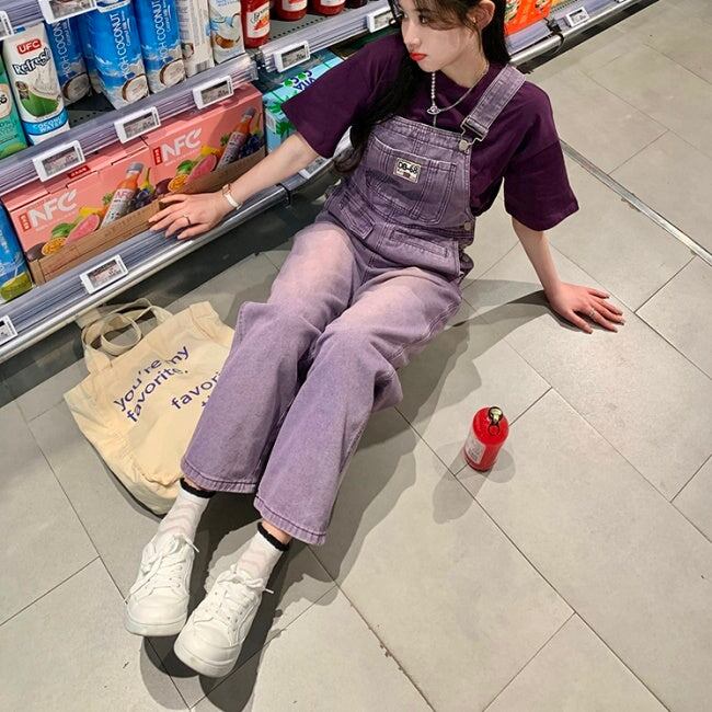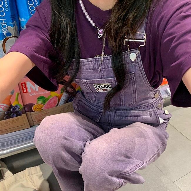 Tシャツとオーバーオール♪同系色パープル
