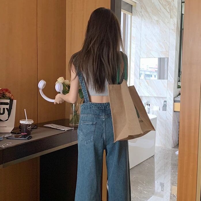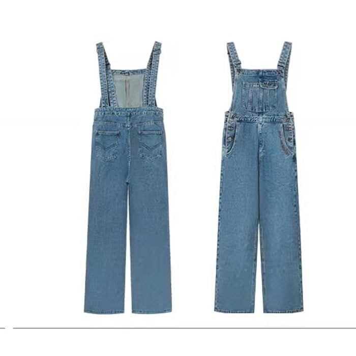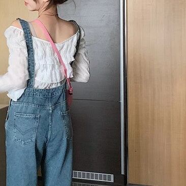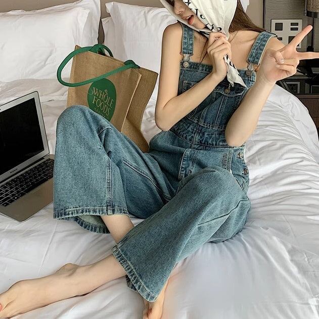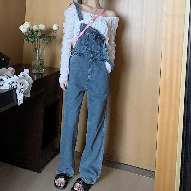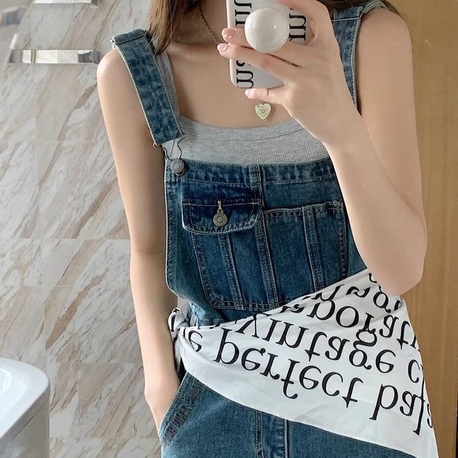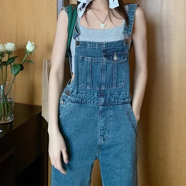 デニム オーバーオール レディース 韓国 ファッション サロペットパンツ オールインワン ヴィンテージ加工 ブルーデニム
