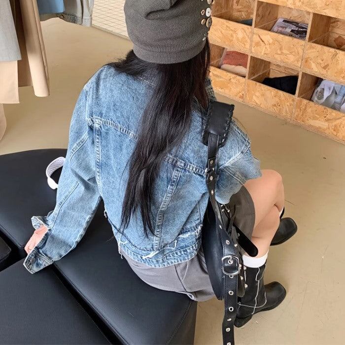 デニム ジャケットレディース 韓国 秋 アウター アメカジ ダメージ加工 大人かわいい カジュアル デニム