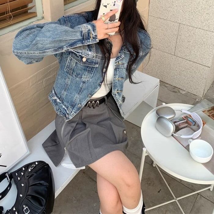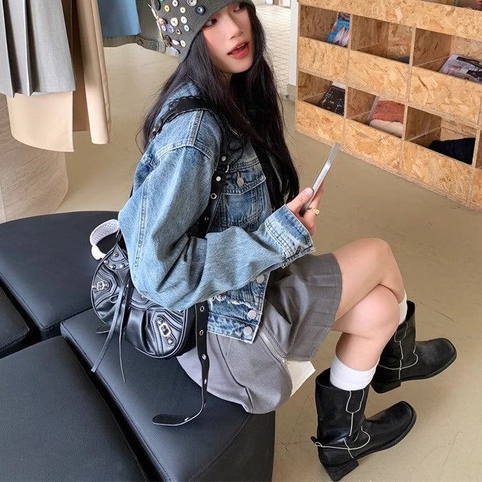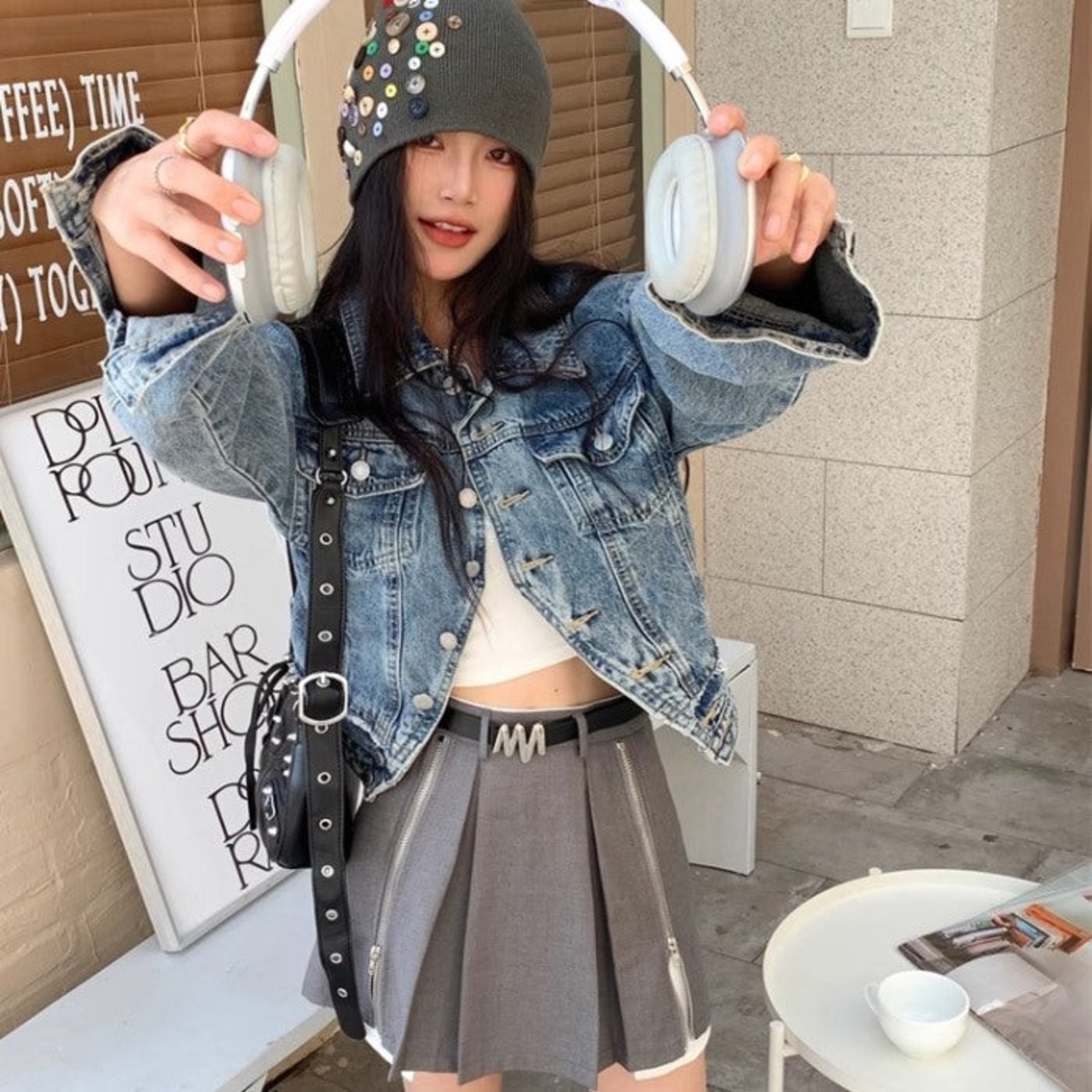 デニムジャケット 秋冬アウターレディース 韓国 ファッション アメカジ ダメージ加工 ベーシック 大人カジュアル