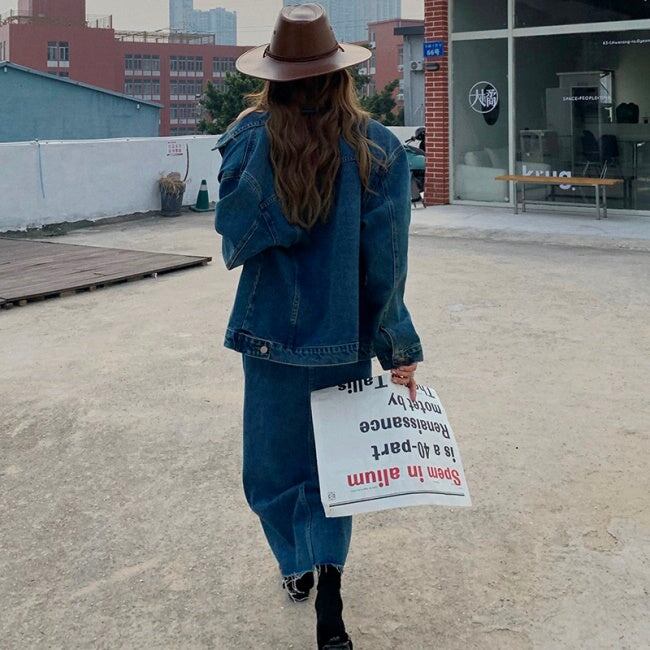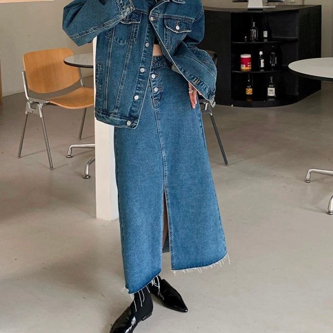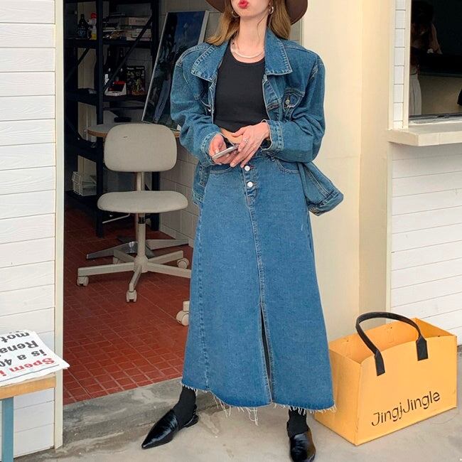デニム セットアップ レディース ロングスカート ジャケット 上下セット 韓国 ファッション デニムスカート デニムジャケット
