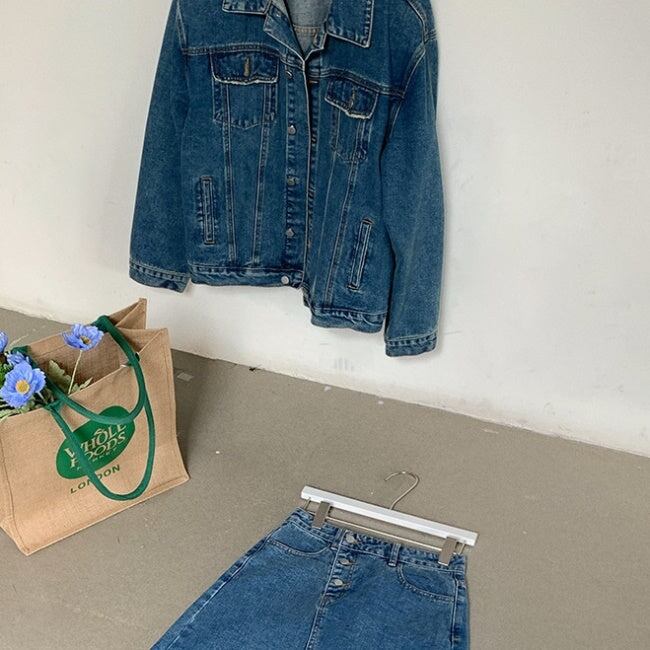 春コーデにぴったりなデニム上下♪Aラインスカートとジャケットt