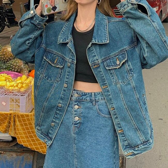 デニム セットアップ レディース 韓国 ファッション デニムスカート デニムジャケット ブルーデニム レトロ ウェスタン