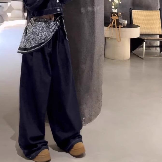 セットアップ レディース 韓国 ファッション バックシャン ワイドパンツ デニムジャケット シャツジャケット バックスリット インディゴデニム