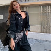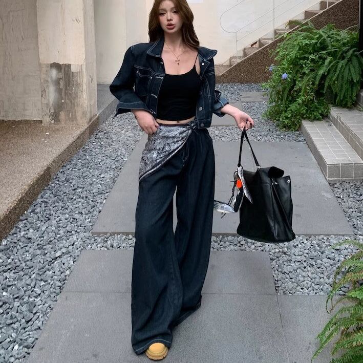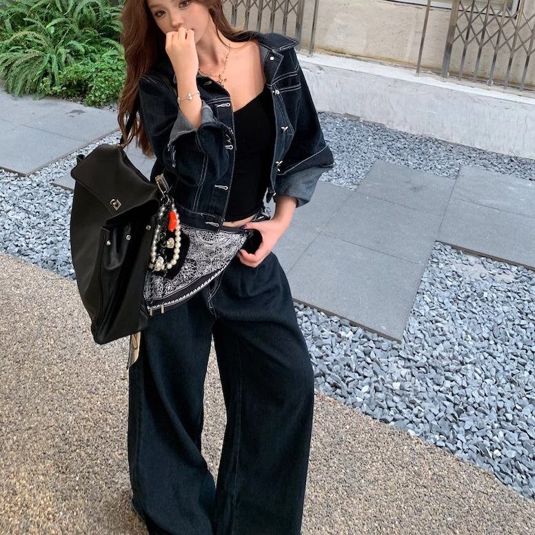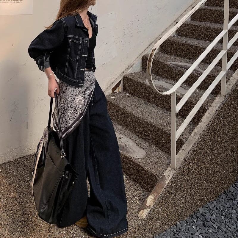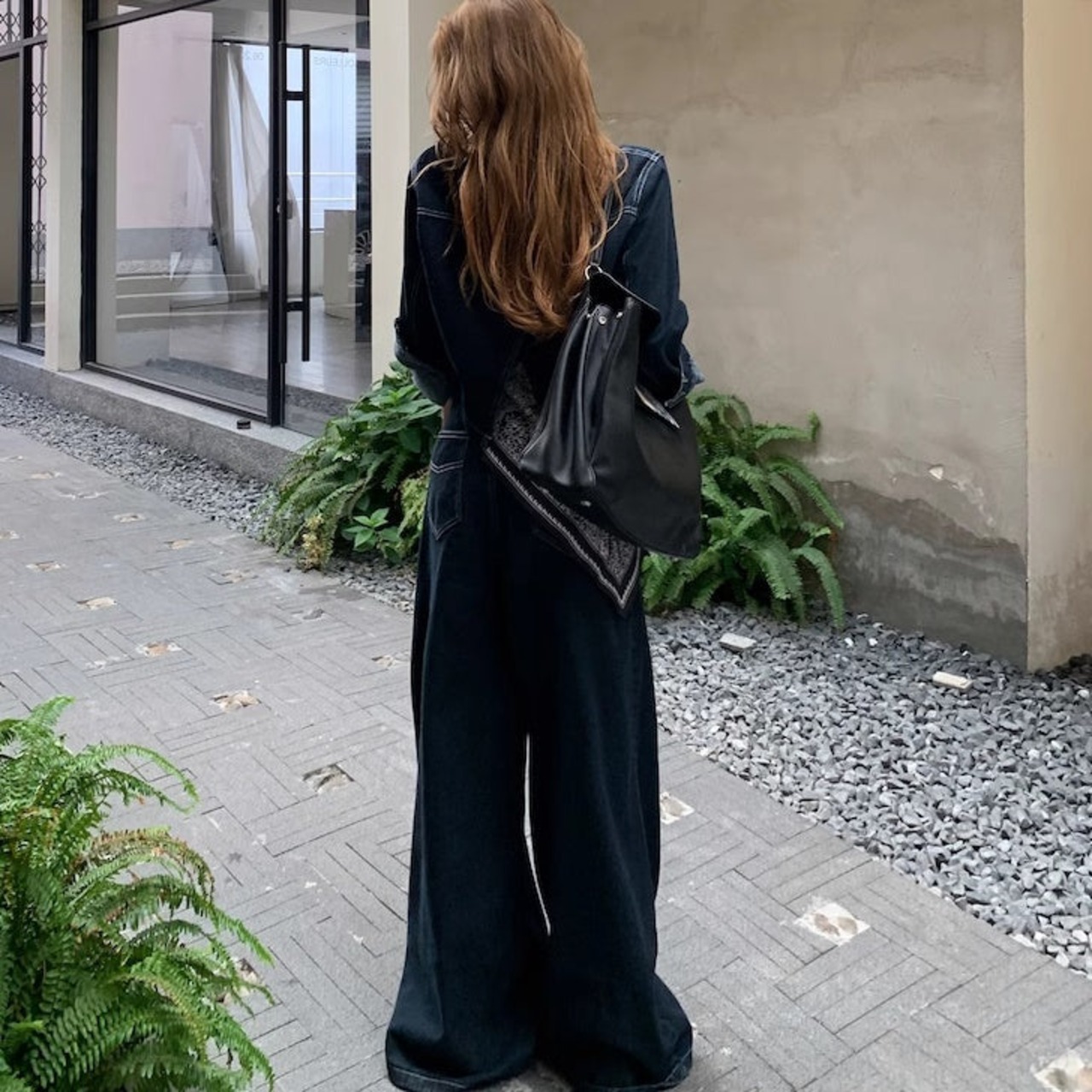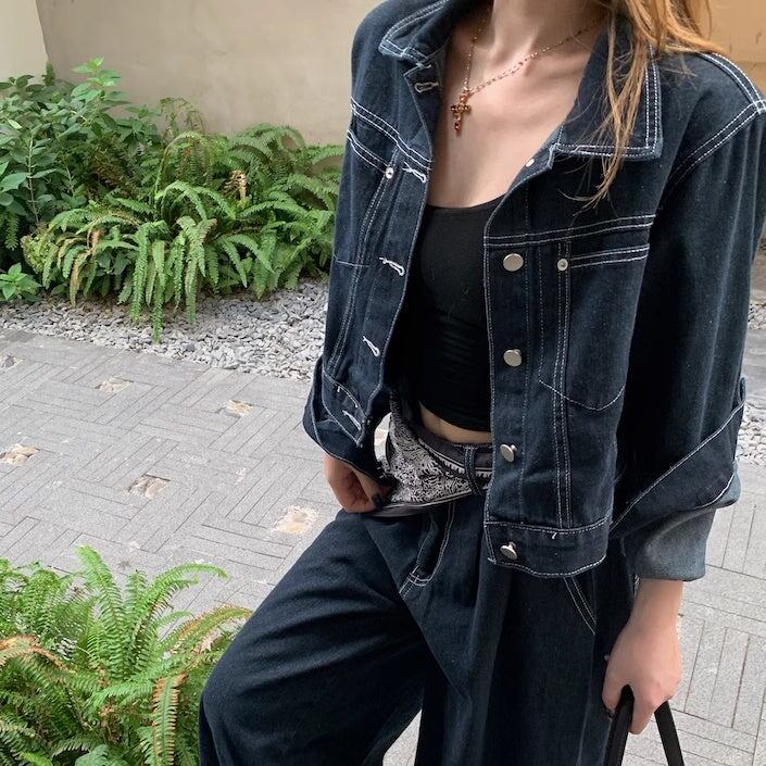 デニムジャケットとワイドパンツのおしゃれアイテム