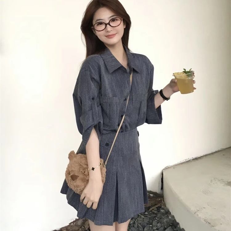 デニム セットアップ レディース 韓国 夏 デニムシャツ ミニスカート 上下セット