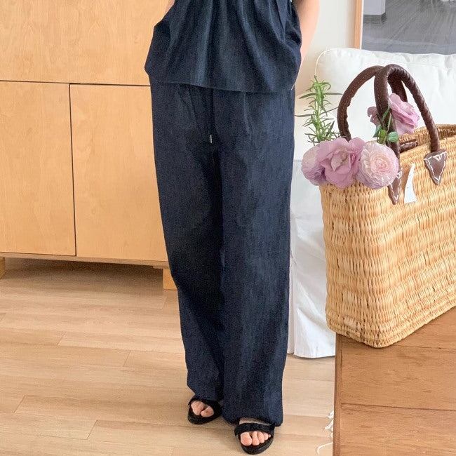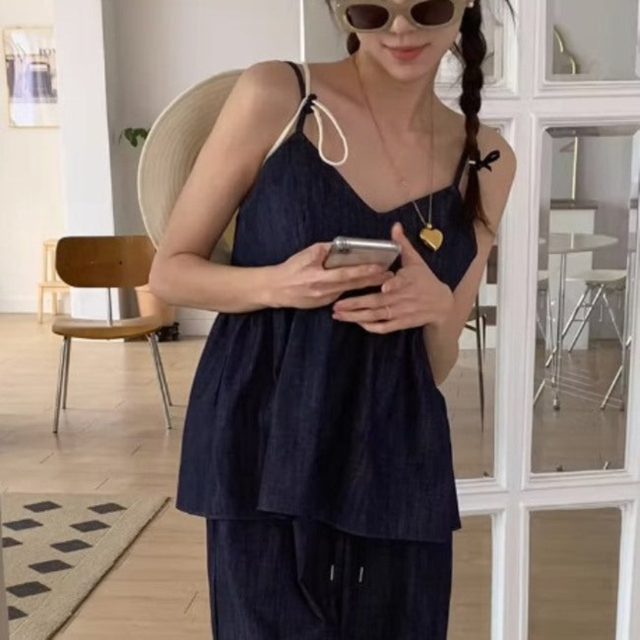 デニム セットアップ 夏 レディース 韓国 デニムチュニック キャミソール ワイドパンツ 上下セット 夏コーデ