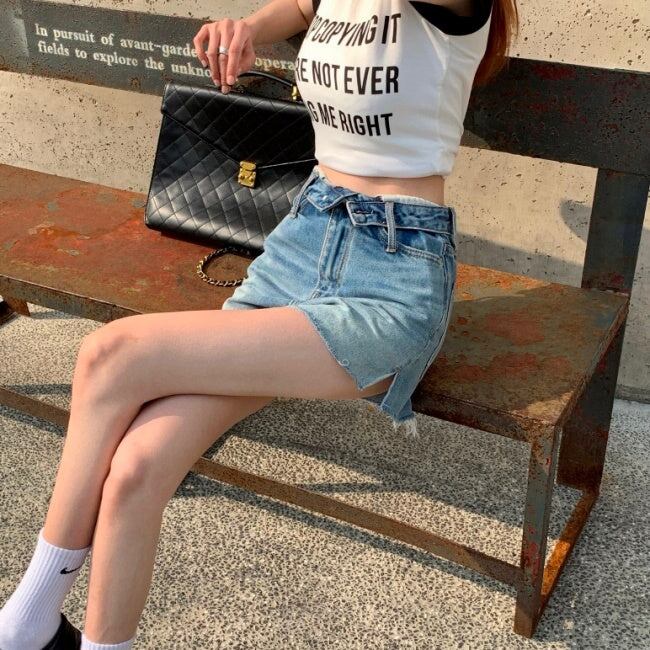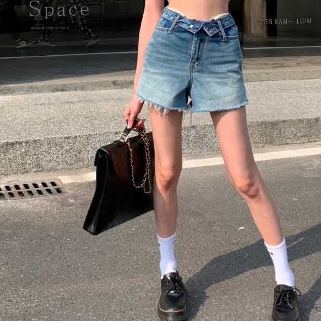 デニム ハーフパンツ レディース 韓国 ファッション ヴィンテージ カットオフ デニム ワイド ハーフパンツ