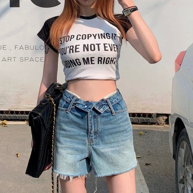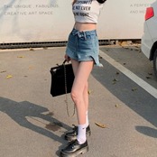 デニムショートパンツ レディース 韓国 ファッション レトロ カットオフ デニム 夏 パンツ? ホットパンツ? ニッチ ストレート ワイドレッグ デニムパンツ